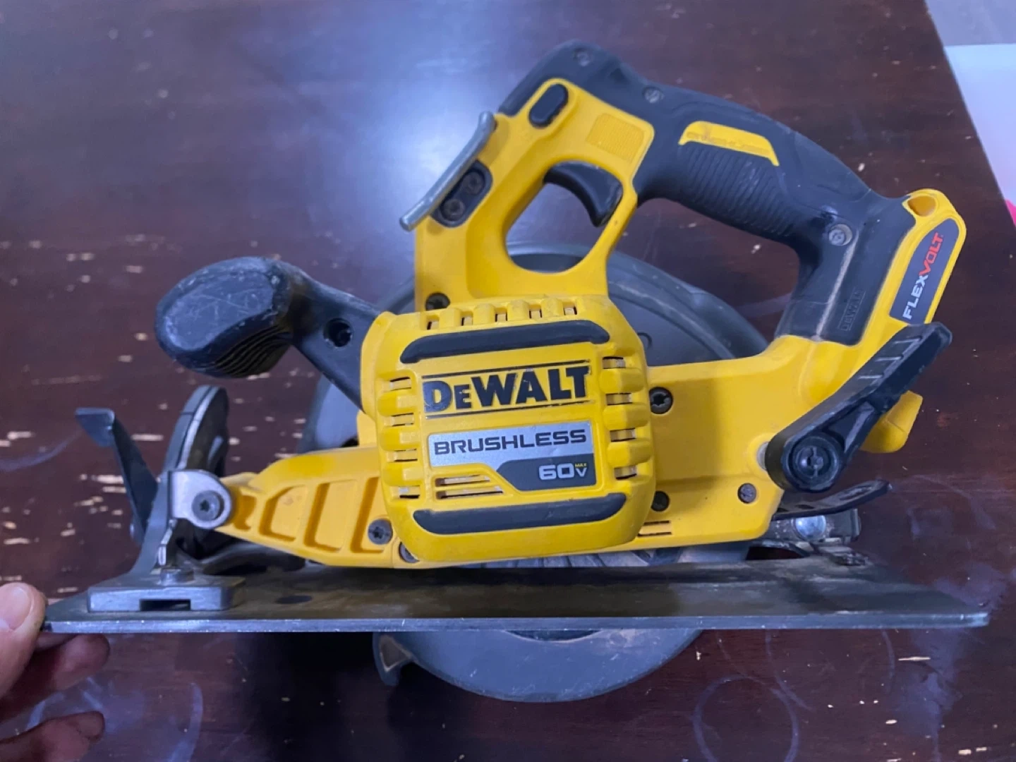 Selling a DeWalt 60V cordless circular saw, model DCS578. It's in good working condition and ready for your next project! Features a 7 1/4" (184mm) blade and a brushless motor for efficient cutting