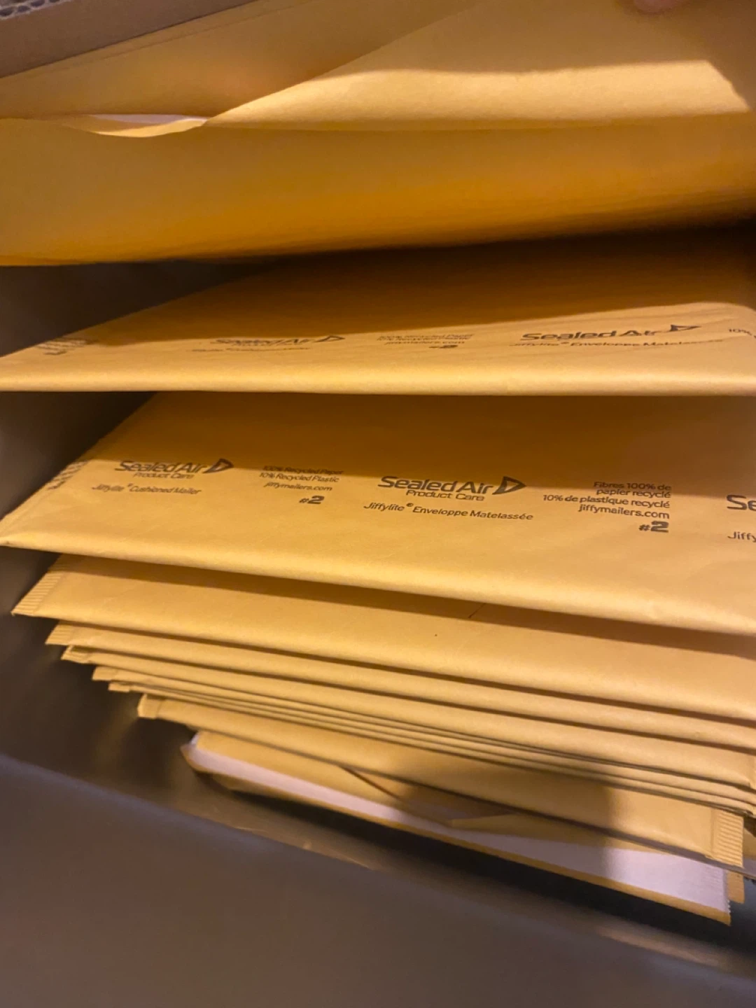 Selling up to 80 Sealed Air Jiffylite cushioned mailers. These mailers are made with 100% recycled paper and 10% recycled plastic. I have extras leftover. I don’t use this size personally anymore, as I usually mail items with smaller-sized mailers. 50¢ each. So if you want 10pcs, that’s $5. But I can do 50 for $20. And all 80 for $30. If you need a specific quantity let me know!