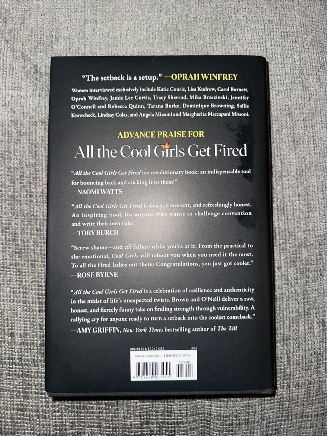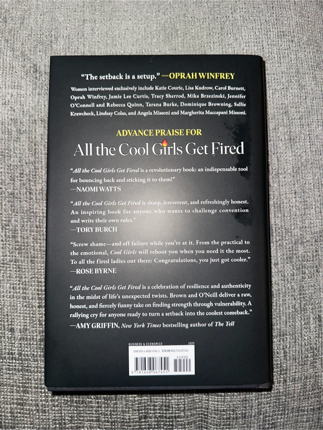 Selling the book "All the Cool Girls Get Fired: How to Let Go of Being Let Go and Come Back on Top" by Laura Brown & Kristina O'Neill. It's a great read for anyone looking to challenge convention and write their own rules