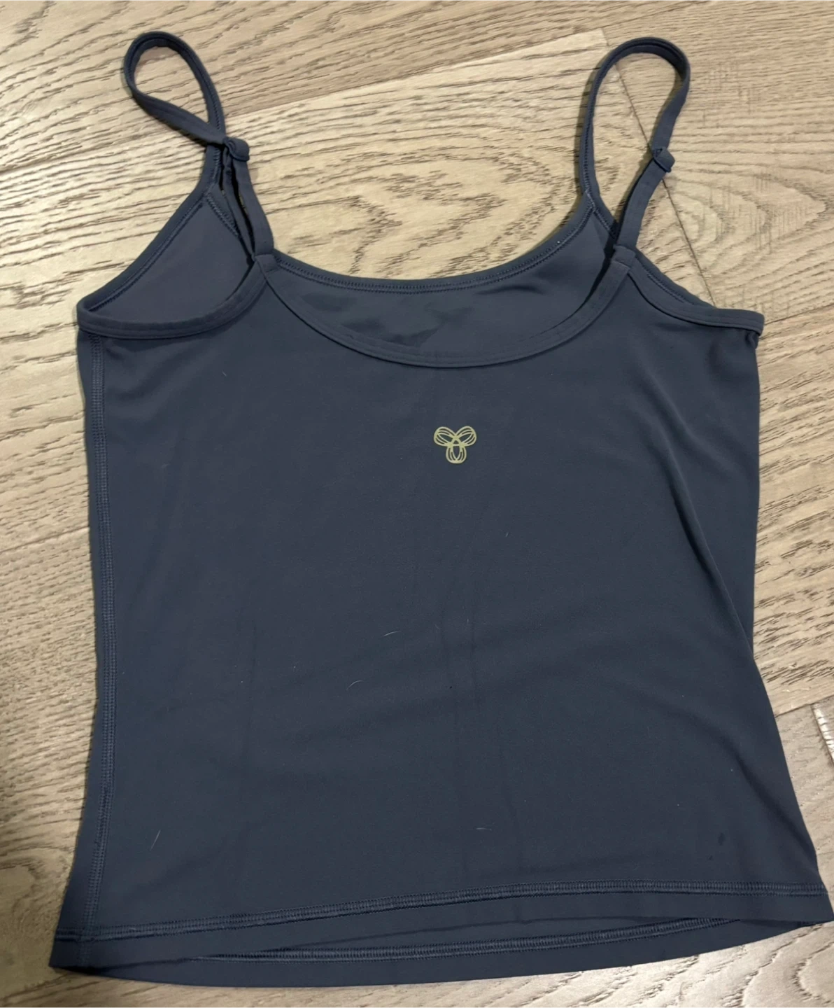 This is a TNA Aranza Cami Tank Top in a dark grey colour. It's in great condition and perfect for layering or wearing on its own! The material is soft and comfortable, making it a great addition to any wardrobe