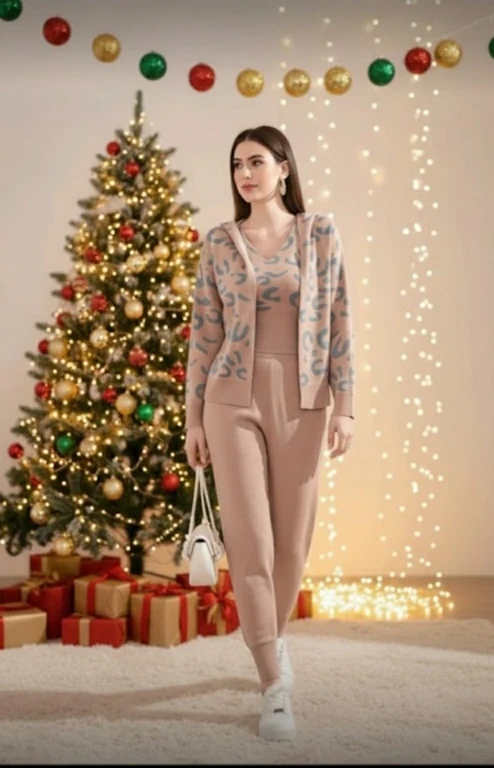 Selling a brand New cozy three-piece set! It includes a hooded cardigan, a tank top, and matching pants. The set features a stylish pattern on the cardigan. Perfect for lounging or casual outings!