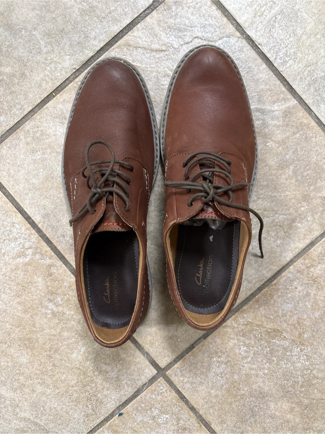 Selling a pair of Clarks Collection men's dress shoes in a nice brown leather.