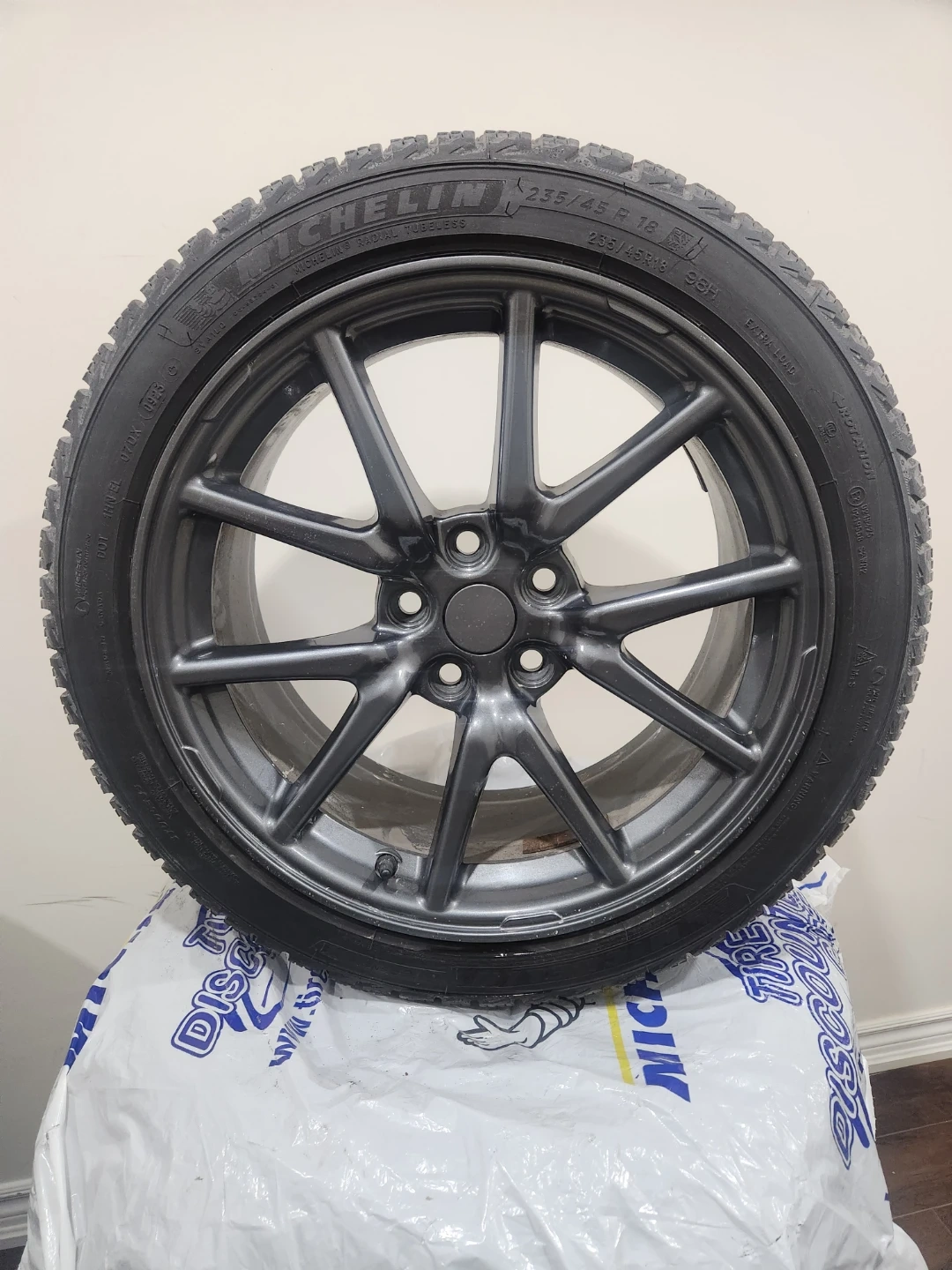 Selling a Michelin winter tire on grade 1 aloy rims, size 235/45R18. It's in good condition and ready for the snow! Production date is 09/2023