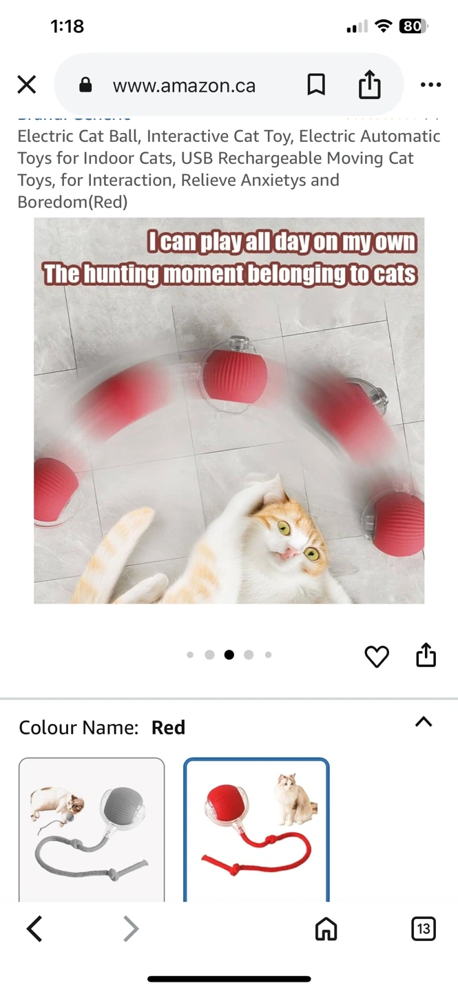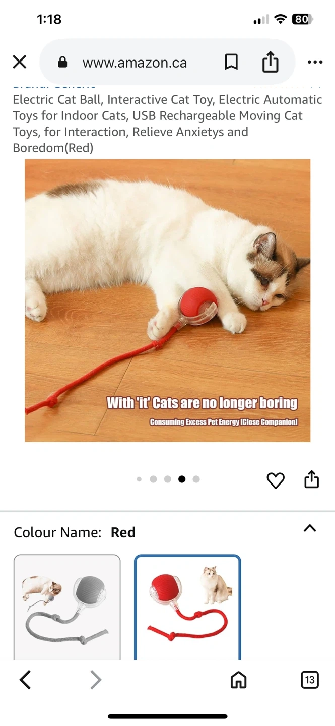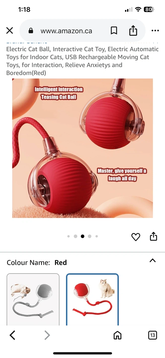 #Cleanout Brand new Interactive Electric Cat Toy Ball - Red