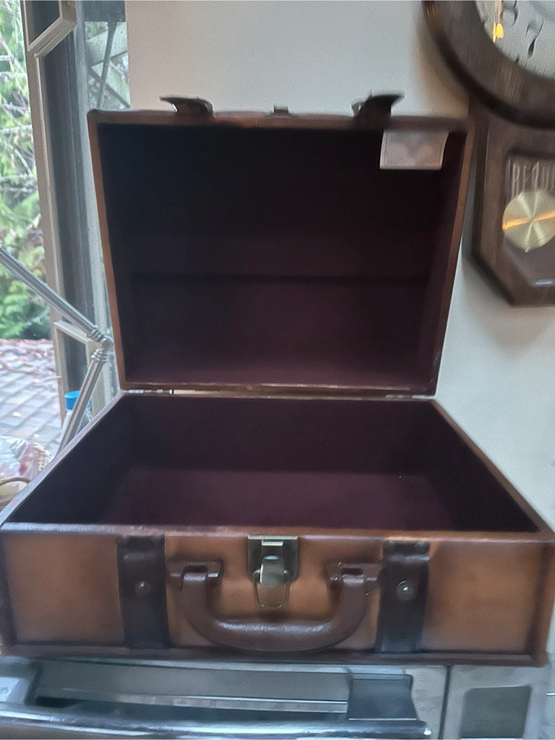 Decorative faux leather storage/suitcase, vintage style with handle. Perfect for Home Decor, Travel Accessories, Space-saving, Organizing Box, for Living Room, Bedroom, Study, Office, Kitchen, Bathroom.