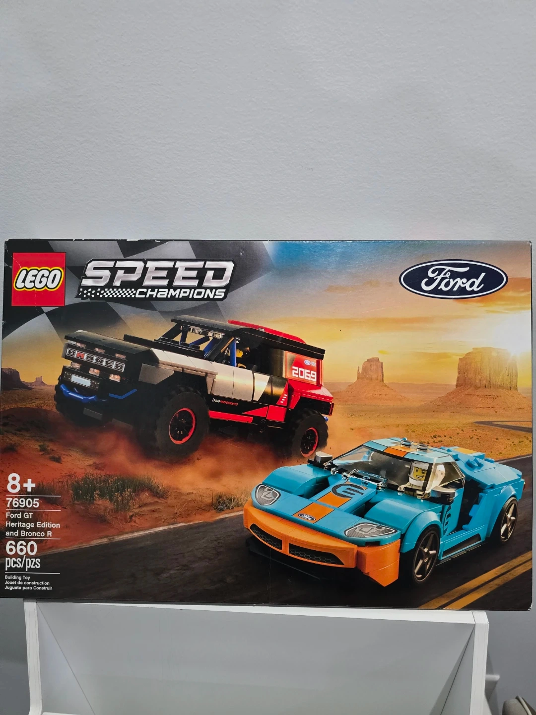Selling a LEGO Speed Champions set featuring the Ford GT Heritage Edition and Bronco R (set number 76905)! It's suitable for ages 8+. This set contains 660 pieces for building both iconic vehicles