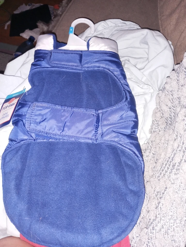 I'm selling a brand new Top Paw dog coat! It's a size small and looks like it would be great for keeping your furry friend warm during the colder months. The coat is blue and features a quilted design, and it's still got the tags on!