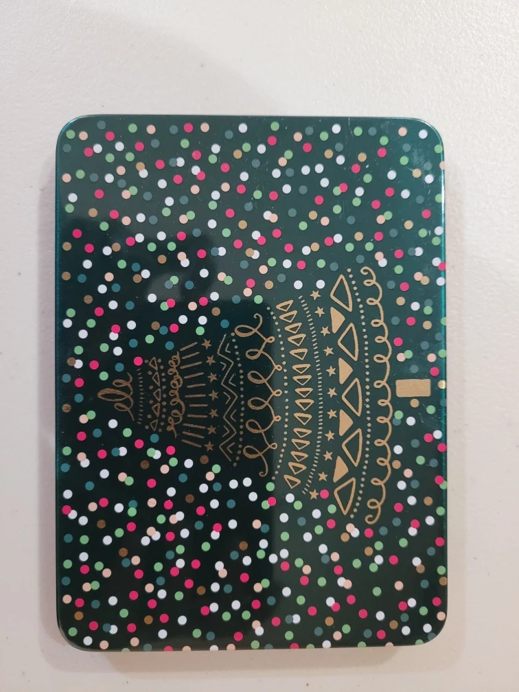 Here's a cute decorative tin container! It's in great shape and ready for a new purpose, whether it's storing small items or adding a touch of whimsy to your space