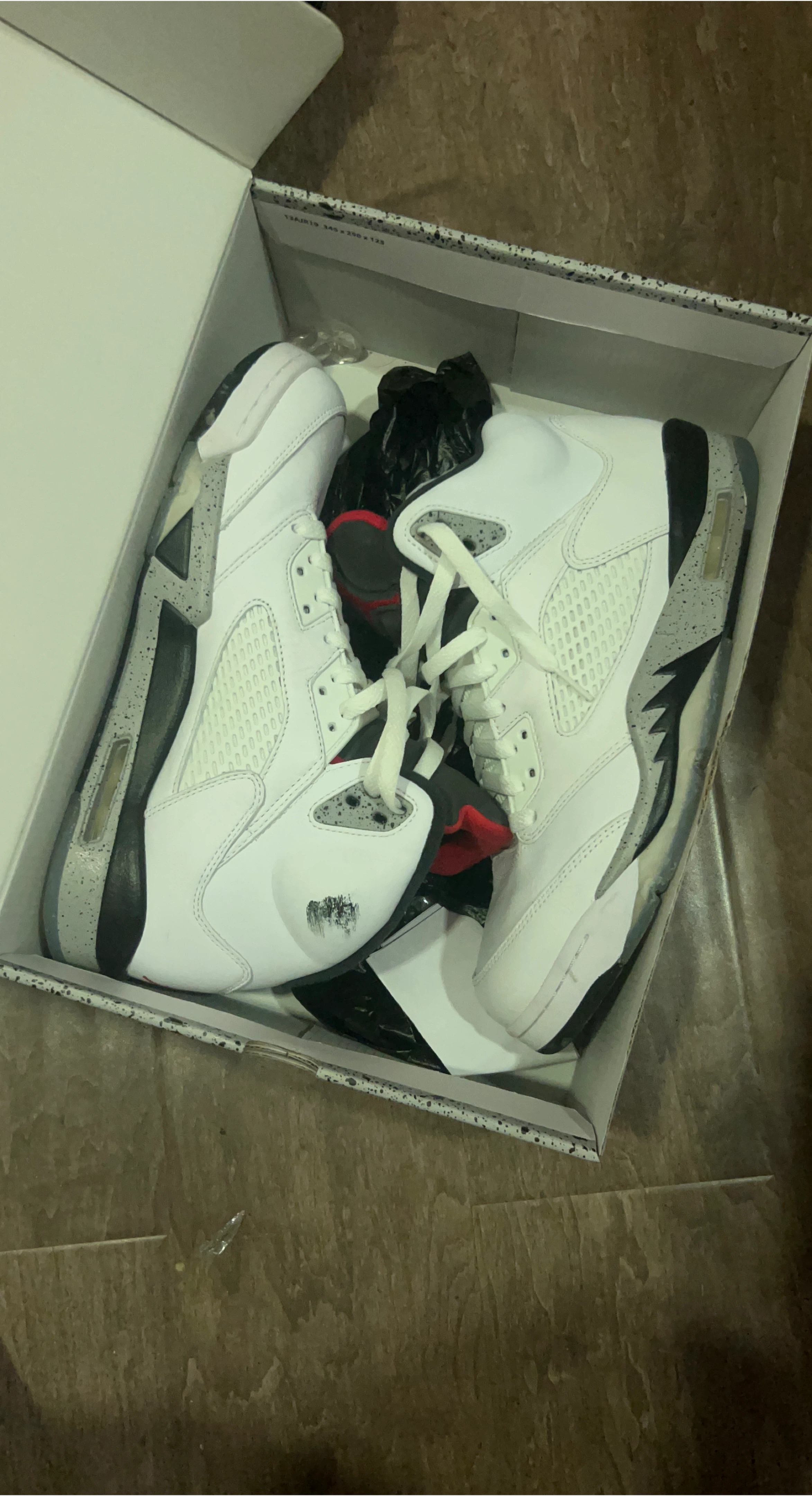 Selling a pair of Jordan 5 Retro Oreo (2013) sneakers in white and black. They come with the original box and are in good condition. Great for any sneaker enthusiast!