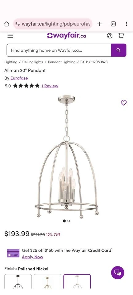 Finish: Polished Nickel