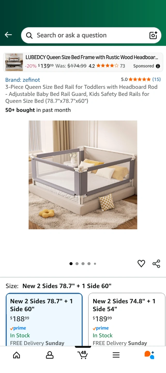 Selling a Zefinot 3-Piece Size Bed Rail for Toddlers with Headboard Rod. This adjustable baby bed rail guard is perfect for a Queen size bed (78.7"x78.7"x60").
