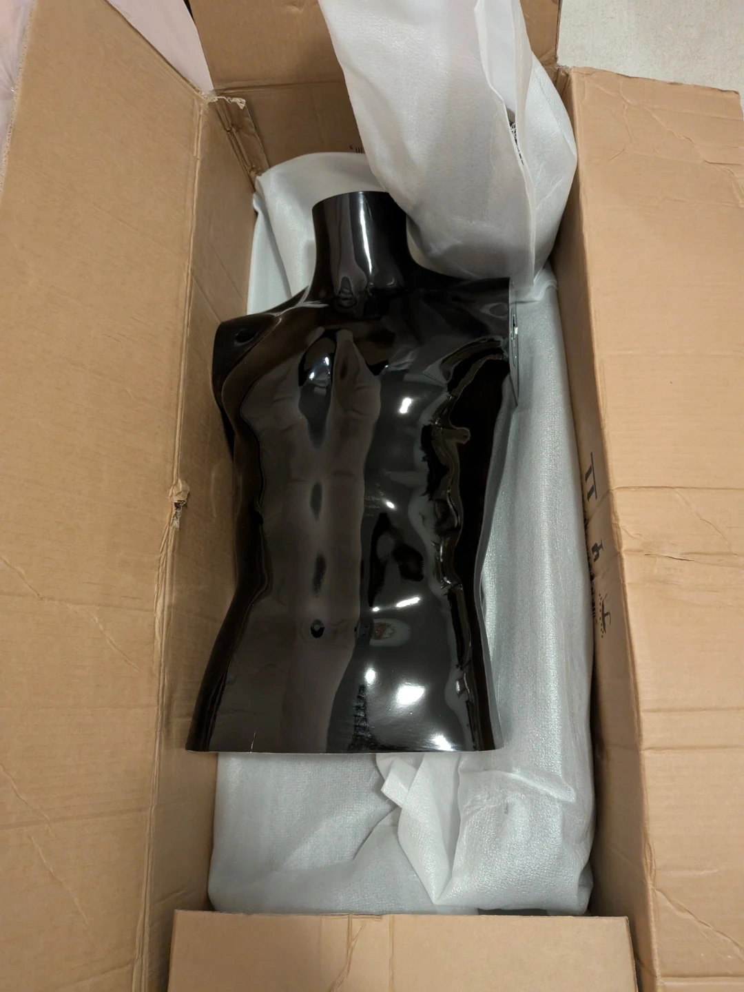 Selling a black female mannequin torso. It's in great condition and comes in its original box with all the packaging. Perfect for displaying clothes or for design projects!