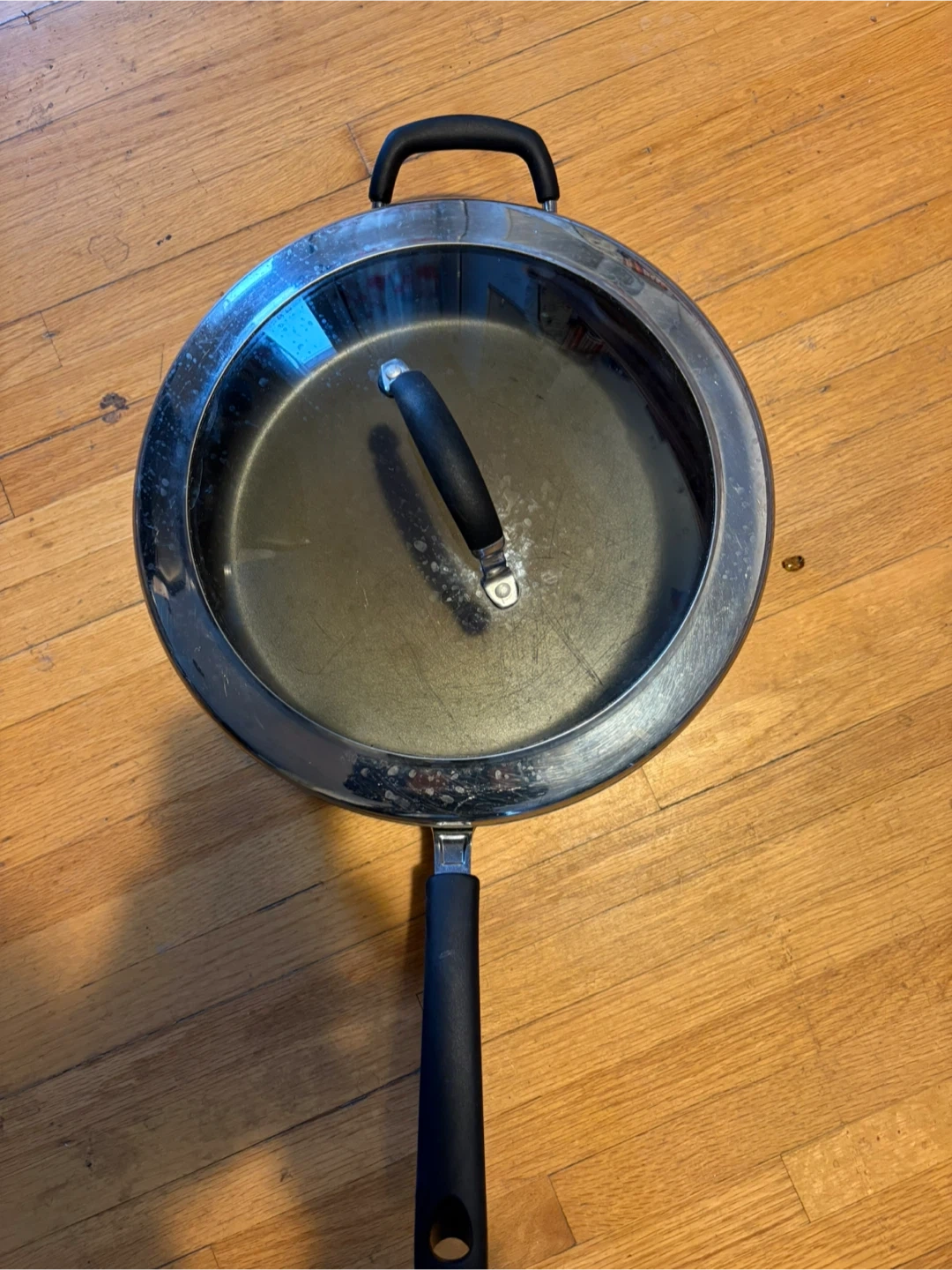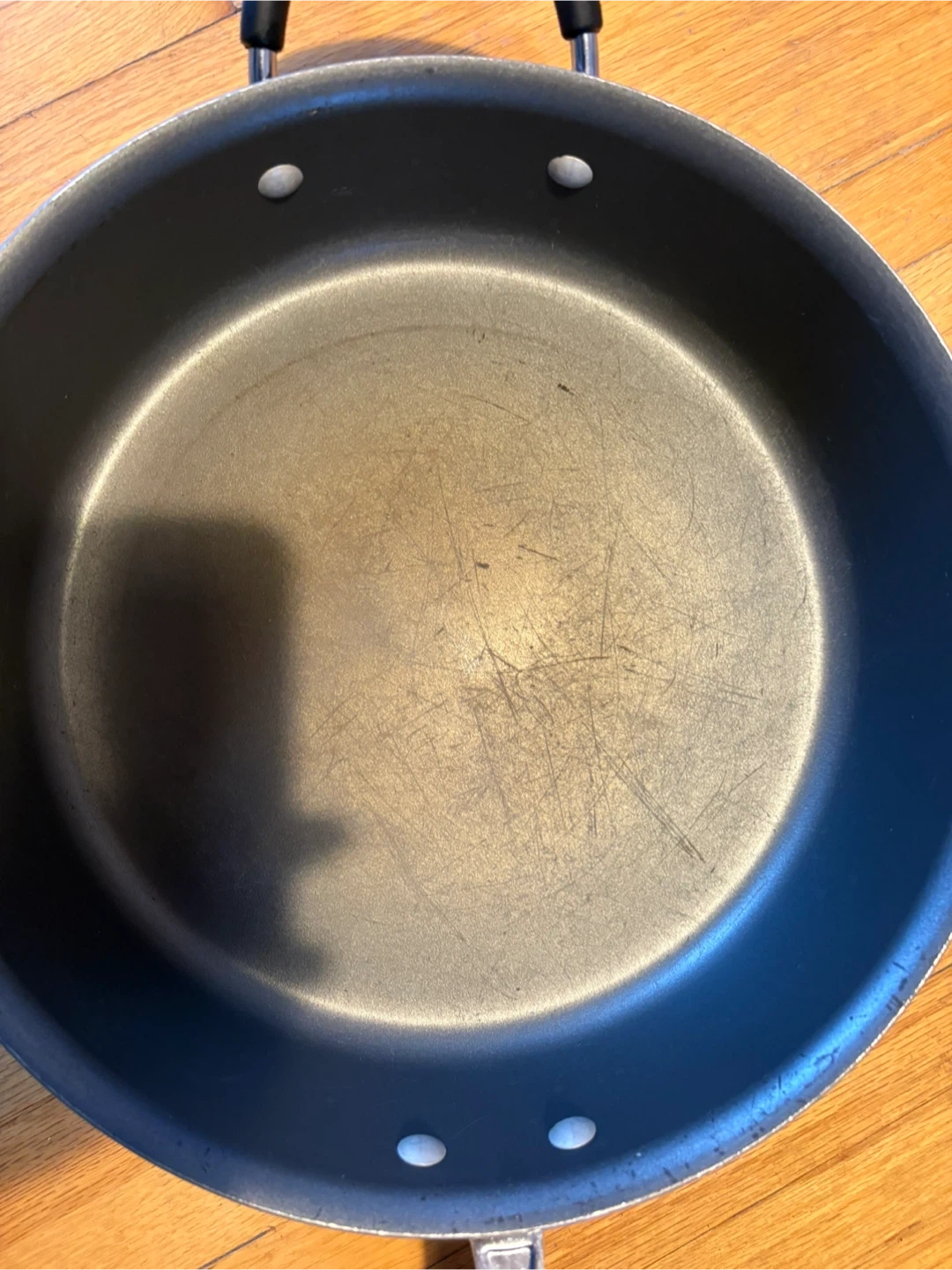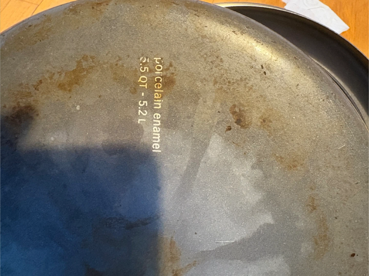 Selling a Tramontina stock pot with a porcelain enamel finish. It's a 5.5 QT (5.2 L) pot, perfect for making soups or stews. It does show signs of use.pickup at Morley trail NW