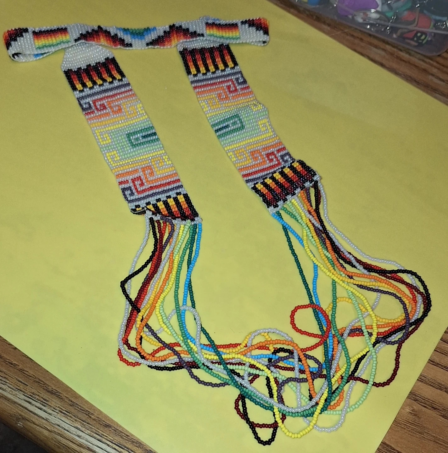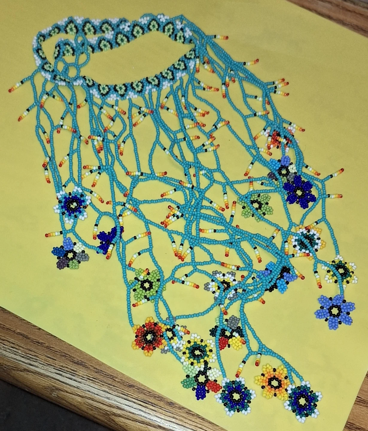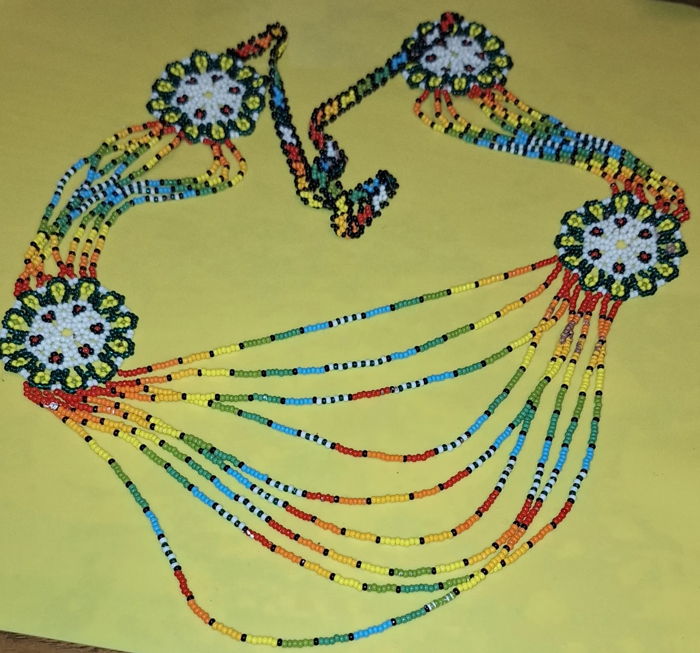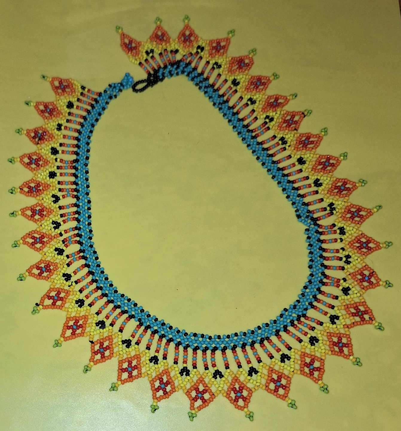 Check out this unique handmade beaded necklaces! They feature a colourful and intricate design. Perfect for adding a pop of colour to any outfit! These are handcrafted and many hours of work put into them. $100