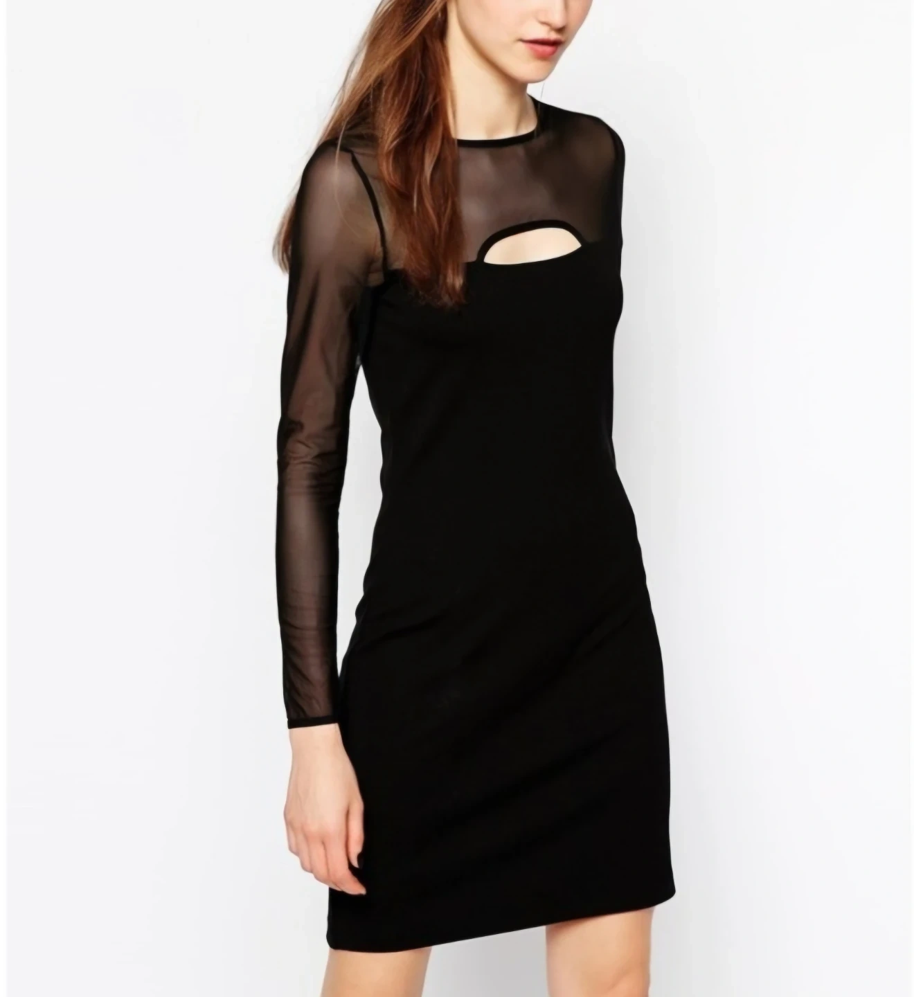 Brand: French Connection - Valentine Viscose Mesh Yoke Long Sleeve Dress