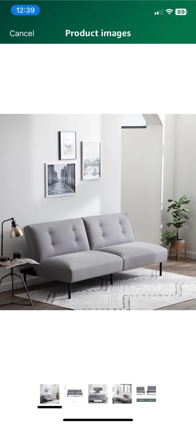 Selling a comfy grey linen futon sofa bed! It's in great shape and would be perfect for a living room or spare room.
