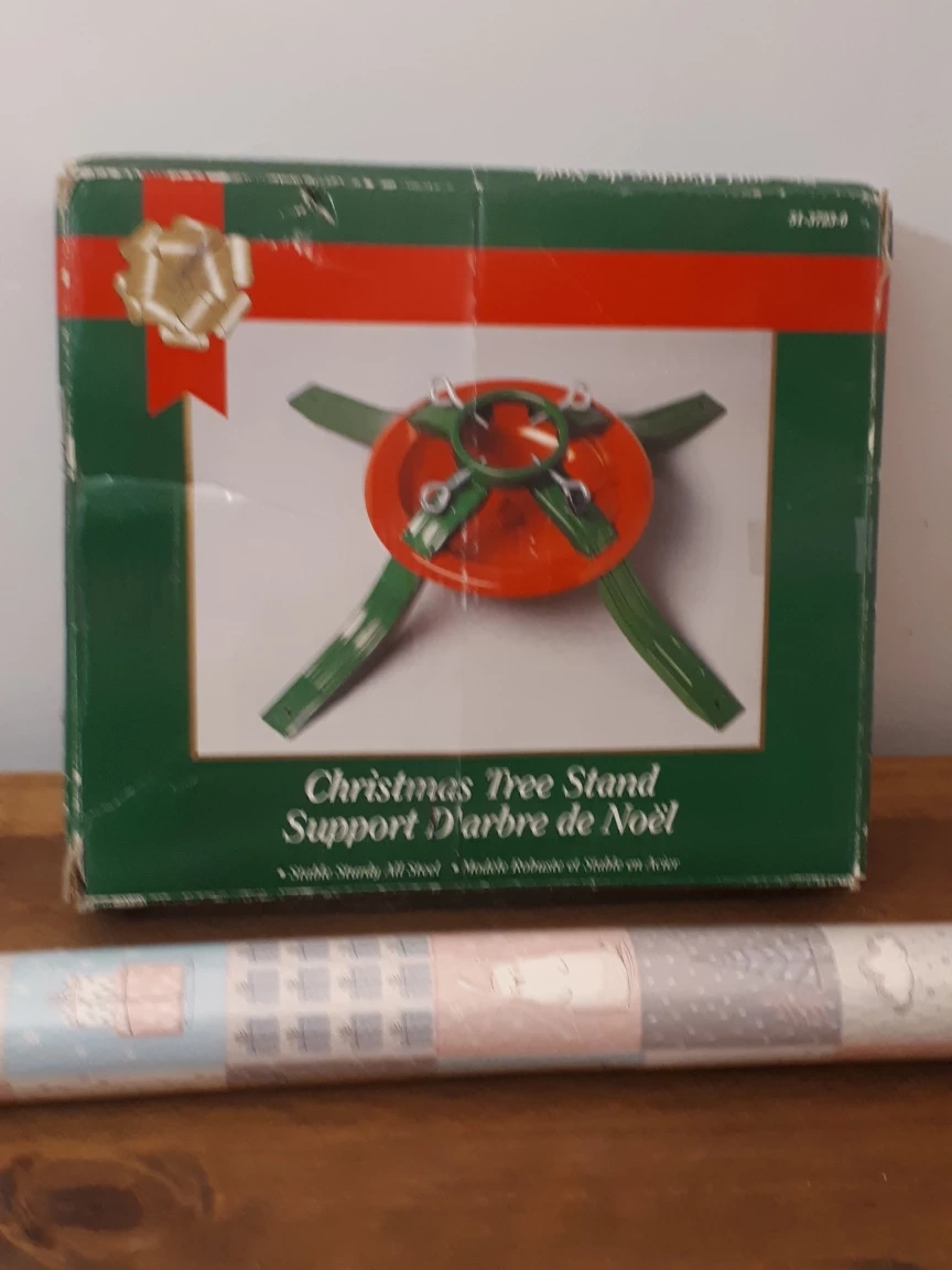 Selling a Christmas Tree Stand. It's a stable, sturdy all-steel stand. Comes in the original box. Plus adding a new, unopened roll of high quality gift wrapping paper (made in UK, wide, approx. 9.2 square meters, brand name: Tom Smith Group, Whales) as a freebie. Patern on paper is unisex, most suitable for children's gifts.