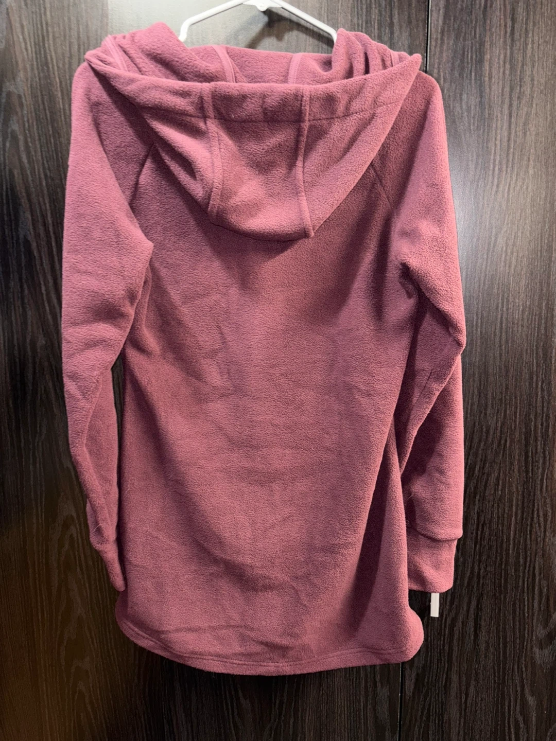 A cozy Bench women’s fleece zip-up hooded jacket in a lovely burgundy colour! It's perfect for layering on chilly days or just lounging around the house. The fleece is soft and warm, making it a comfortable choice for any casual occasion