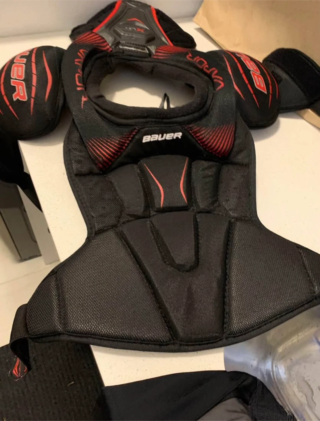 Selling a youth Bauer Vapor XLTX shoulder pad, size JR small/petite. It's in great shape and ready for the ice! The chest size is 26-30 inches.