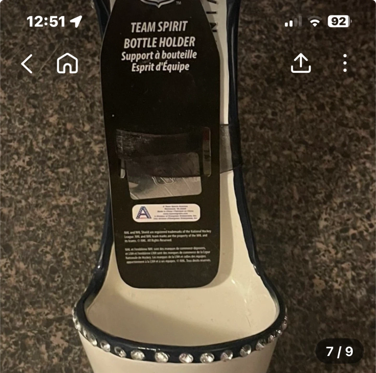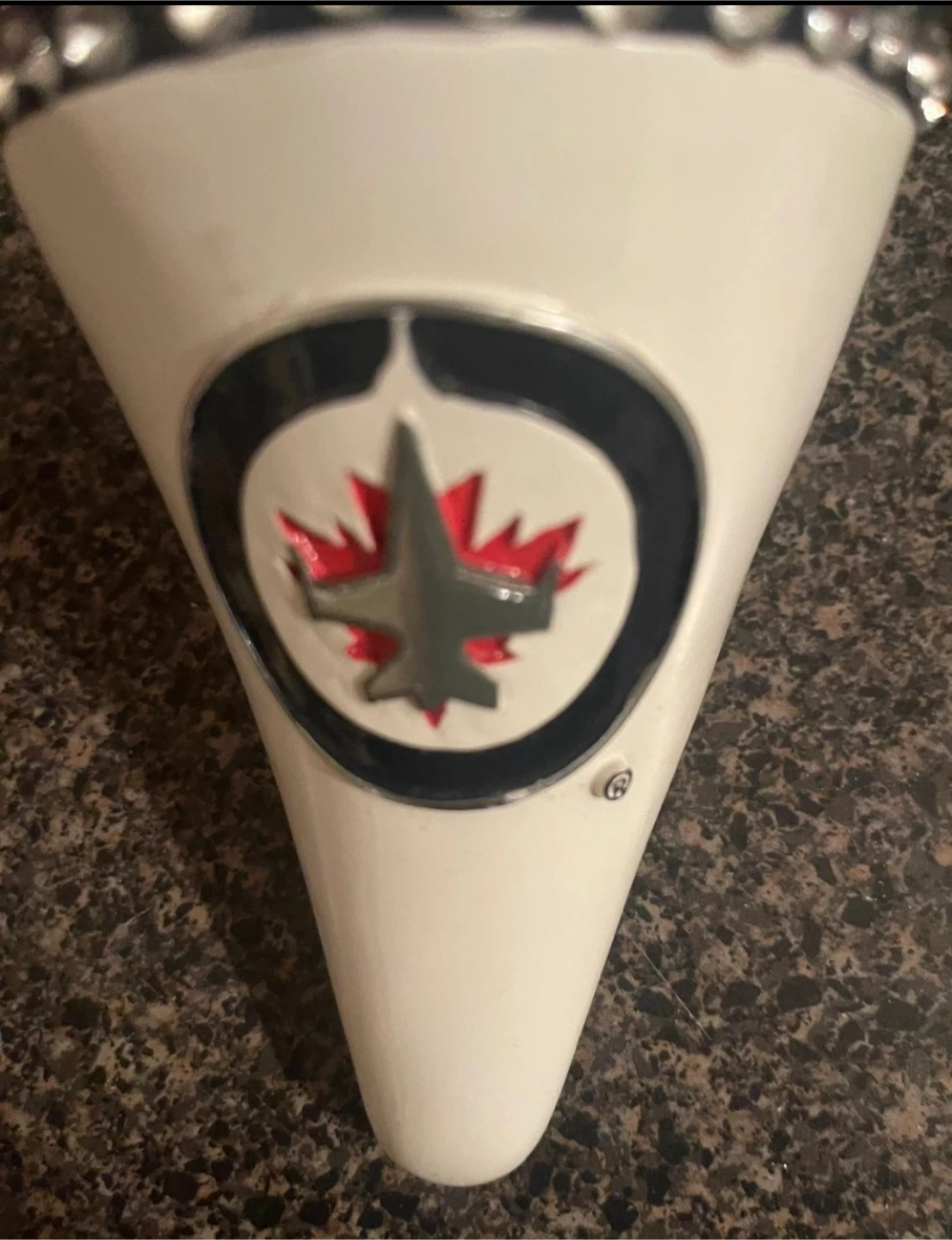 Here's a fun Winnipeg Jets NHL Team Spirit bottle holder! It's shaped like a high heel shoe and features the Jets logo. Perfect for any Jets fan!