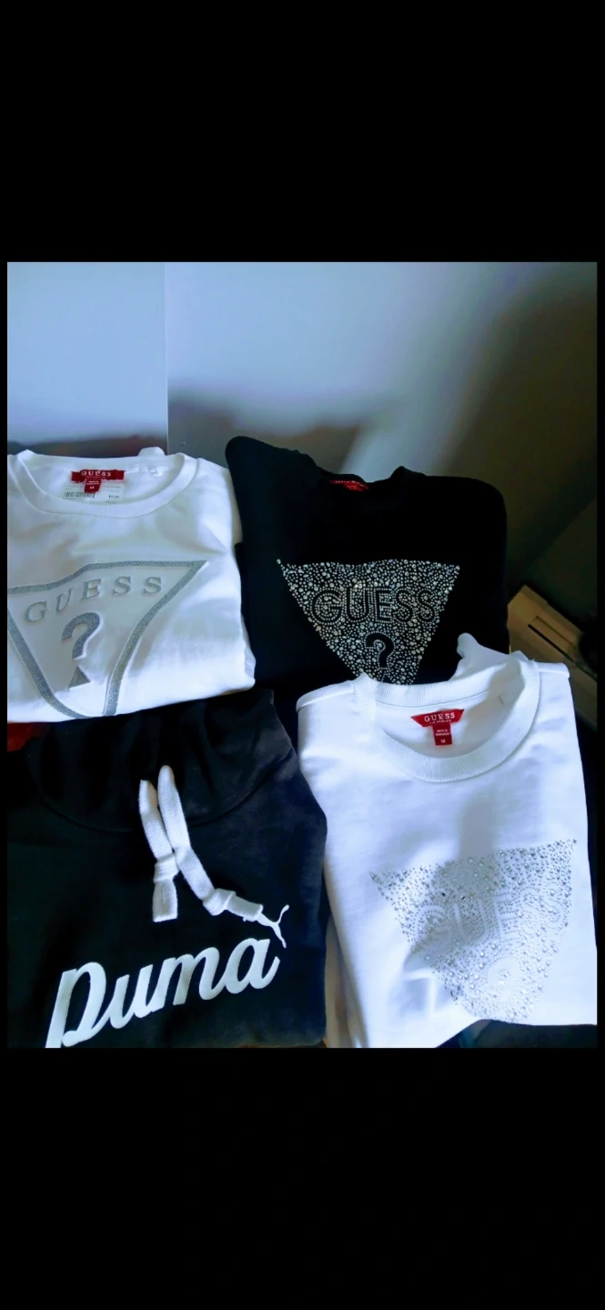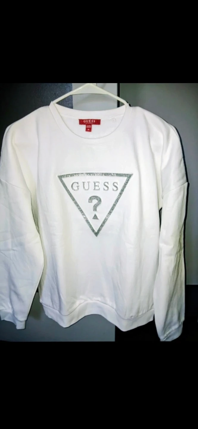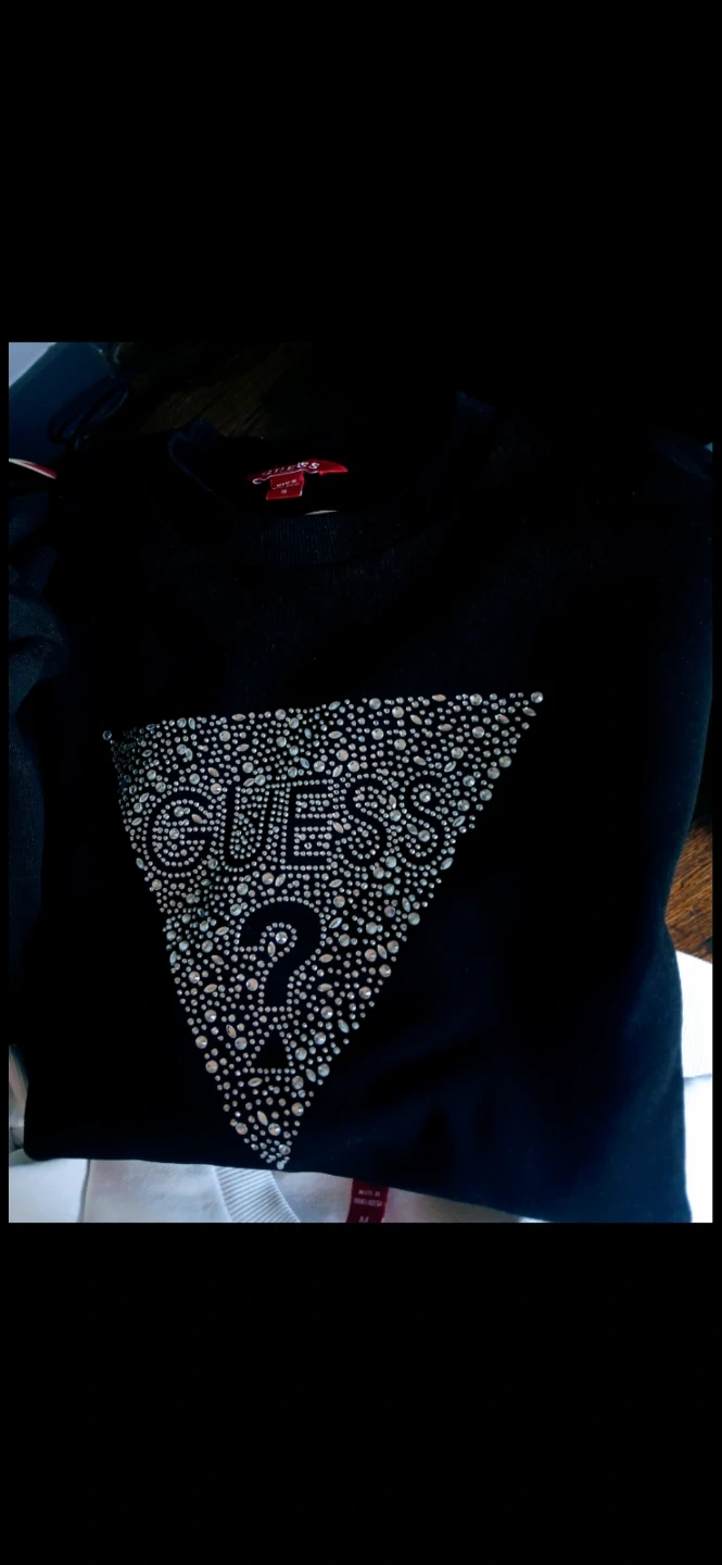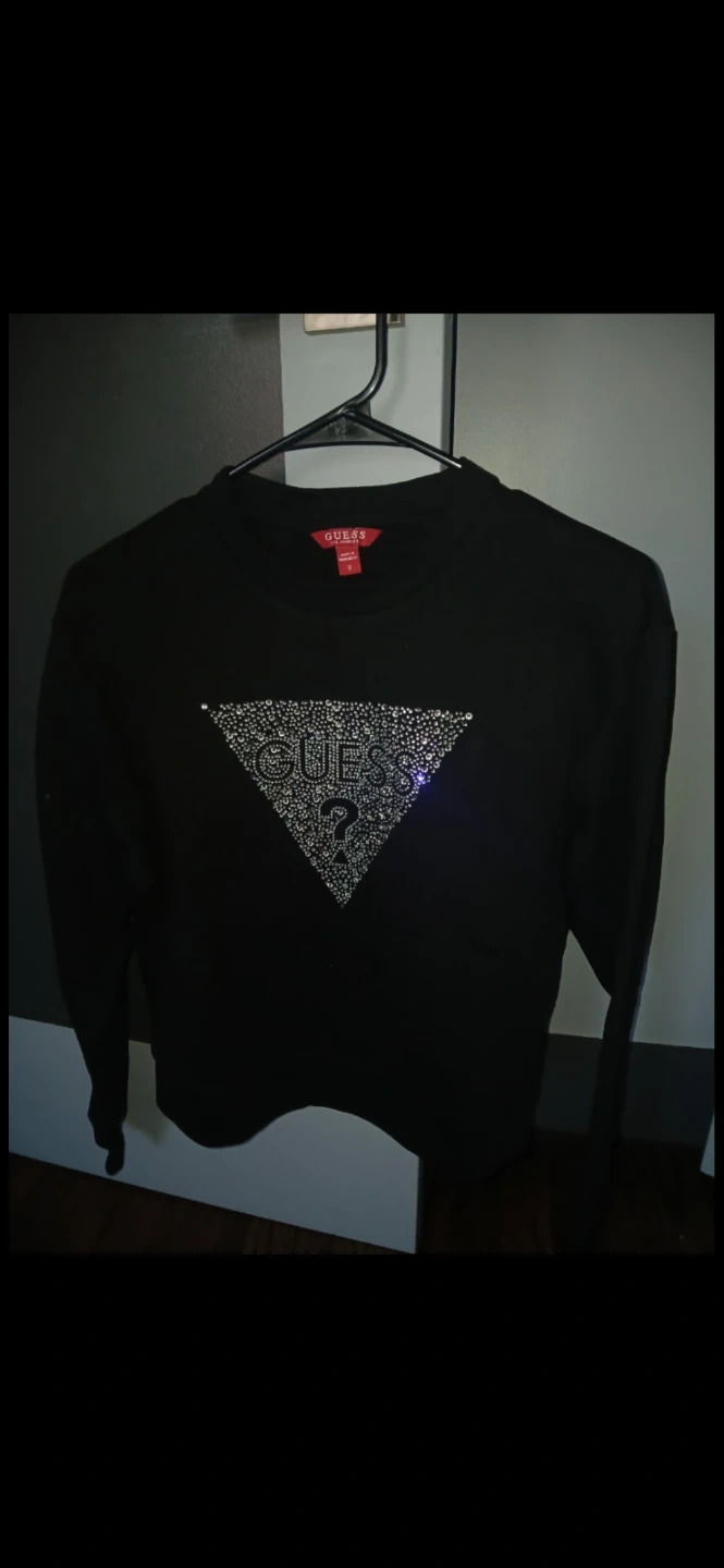 Selling a black Guess sweatshirt with a rhinestone logo. It's in great condition and ready for a new owner!