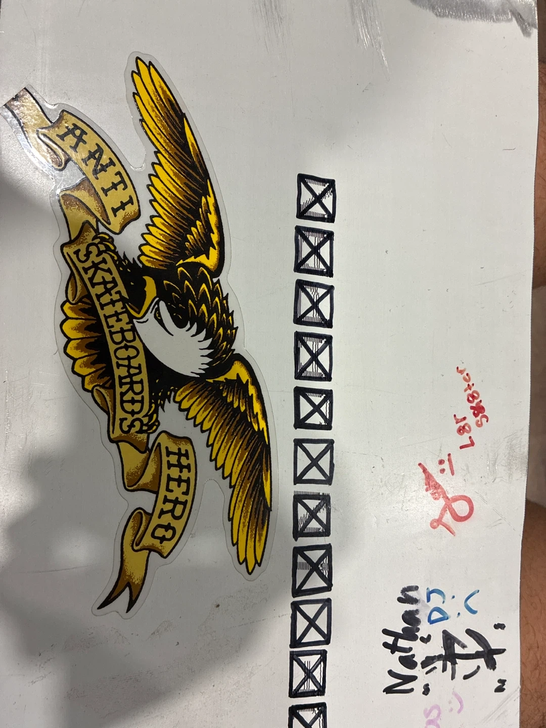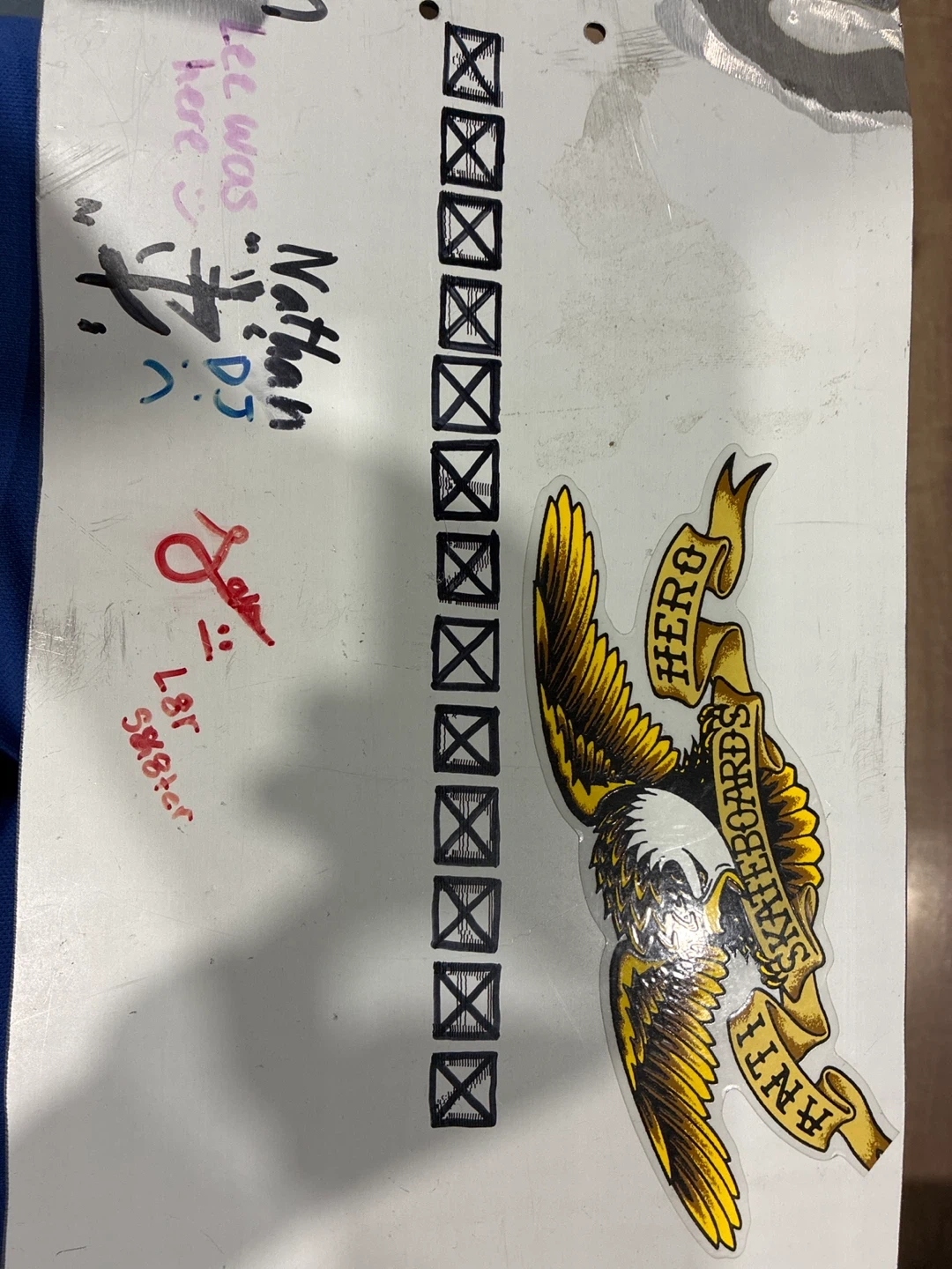 Hand made metal skateboard deck with various stickers, including Supreme and Nike SB! It's in new condition Great for a collector or someone looking for some new wall art not recommended to be used as an actual skateboard because it’s made from really thin aluminum and bends in half when weight is applied