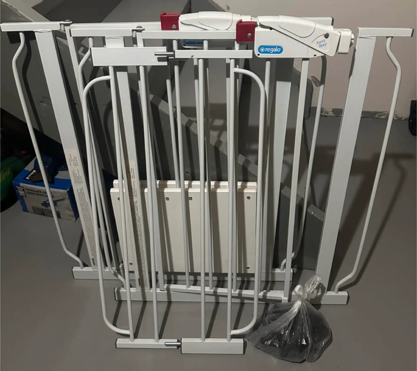 Selling a Regalo Easy Step baby gate in great condition! It's perfect for keeping your little one safe and secure. Easy to install and use, this gate is a must-have for any family with young children. Comes with all the necessary hardware for installation.