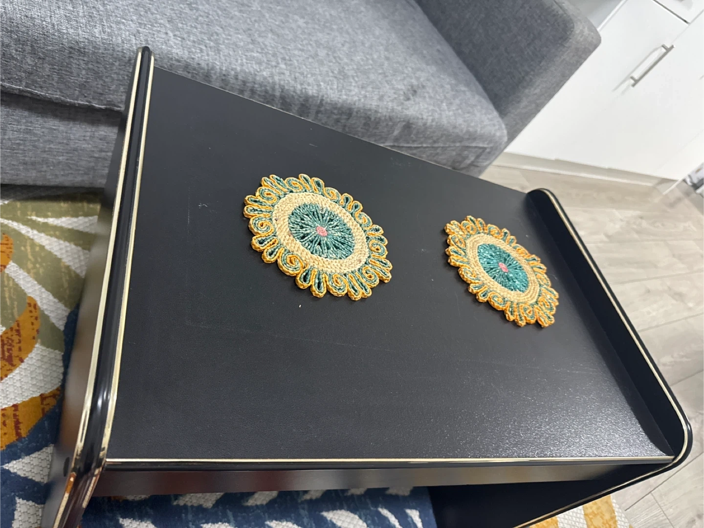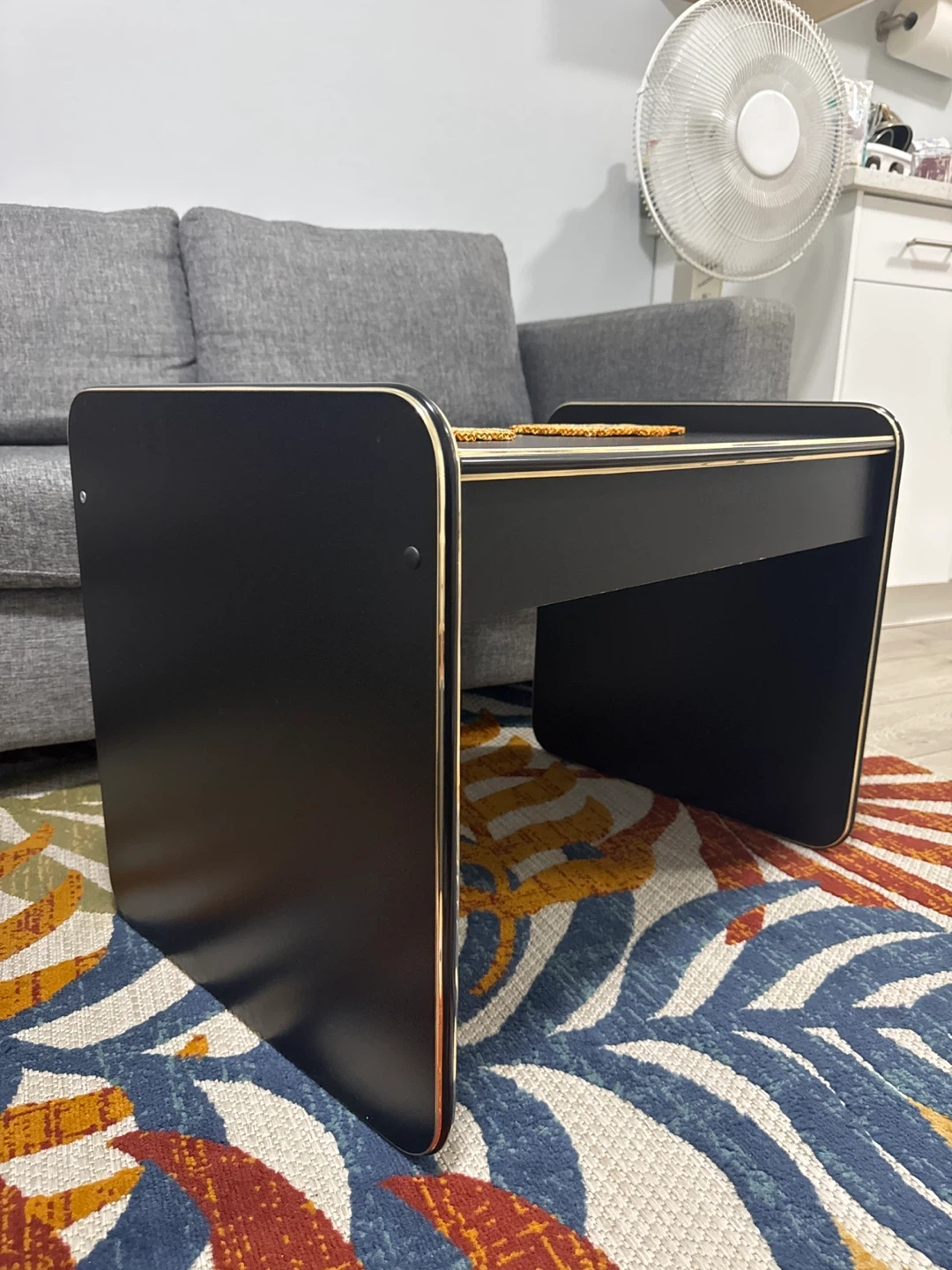 Black Side Table with Gold Trim