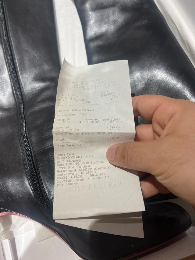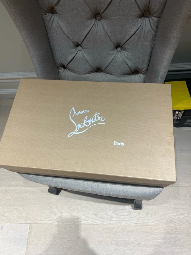 Christian Louboutin black leather heeled boots, a sleek addition to any wardrobe. These are pre-loved boots as the red soles show signs of wear, but they still have plenty of life and fashion-forward strutting left in them! The original retail price was over $1500! Specifications: - Brand: Christian Louboutin - Material: Leather - Colour: Black - Style: Heeled Boots If the ad is up, they're available!