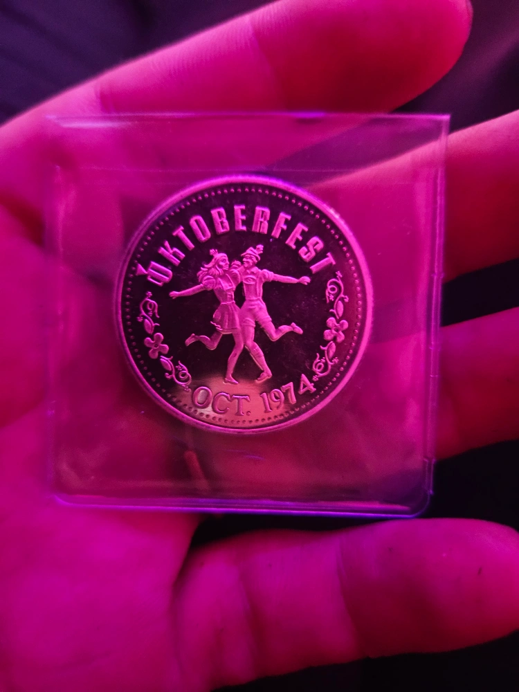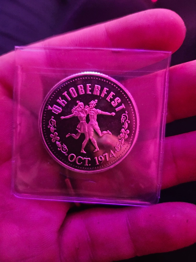 Selling a Kitchener-Waterloo Oktoberfest pure silver 17g Dollar coin from October 1974. It's in great condition and comes in a protective case