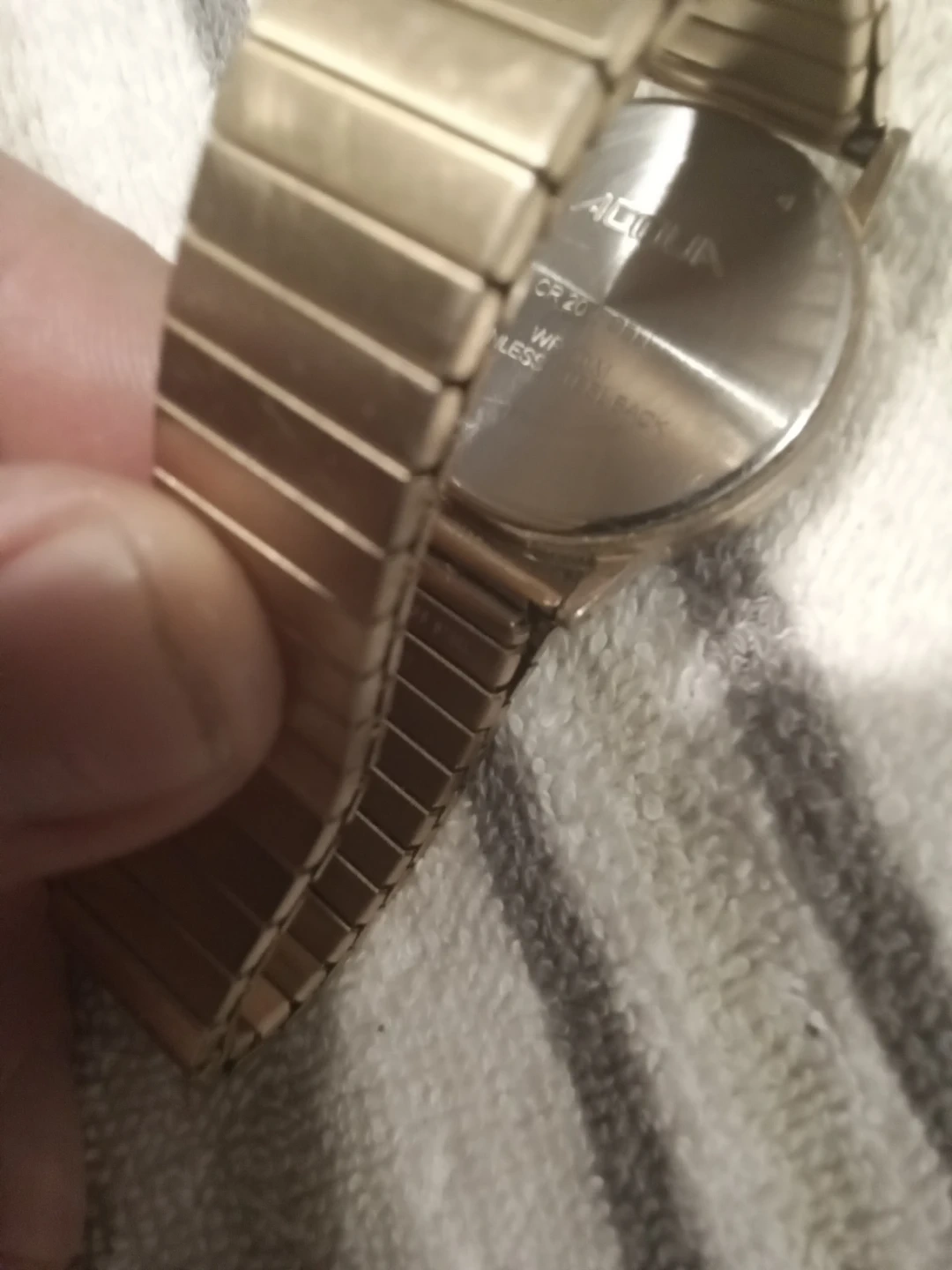 Selling a gently used Acoua watch! It's water resistant and has a quartz movement. The band is gold in colour.
