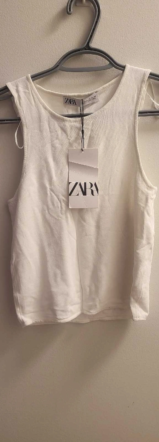 This is a new Zara tank top in size medium, perfect for a casual summer look. Never worn, with original tags still attached! It's made of a soft, comfortable material that feels great against the skin.
