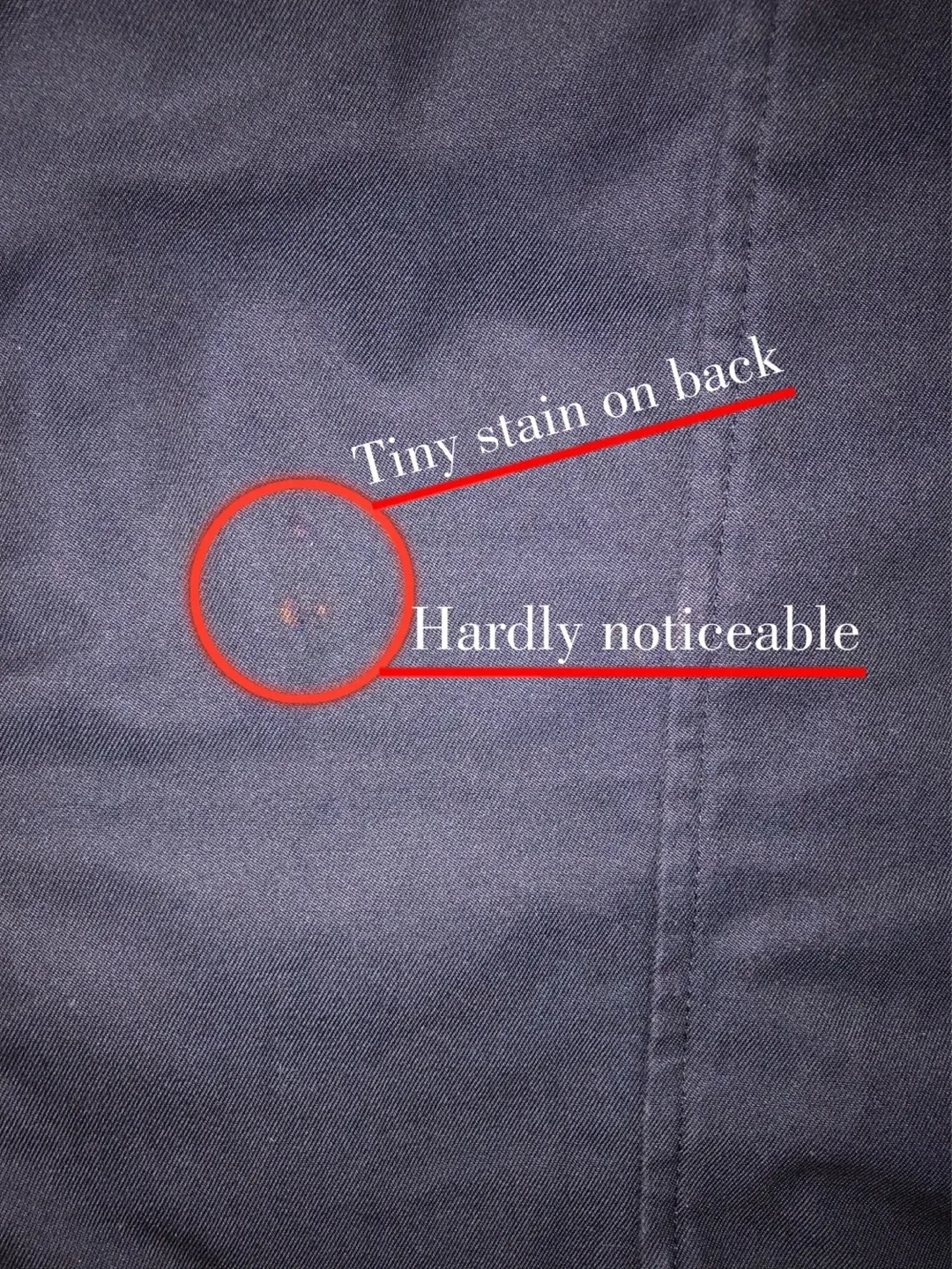 Size says women’s M fits more like an XS. It’s in good condition other than small stain on back. The jacket is made of 100% cotton, with a contrast of 68% polyester and 32% nylon. It features a unique design with patches on the sleeves. Perfect for adding a stylish touch to your wardrobe!