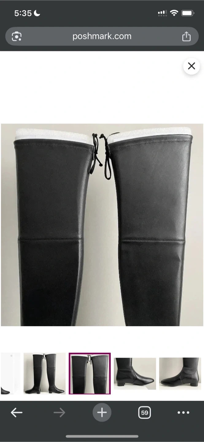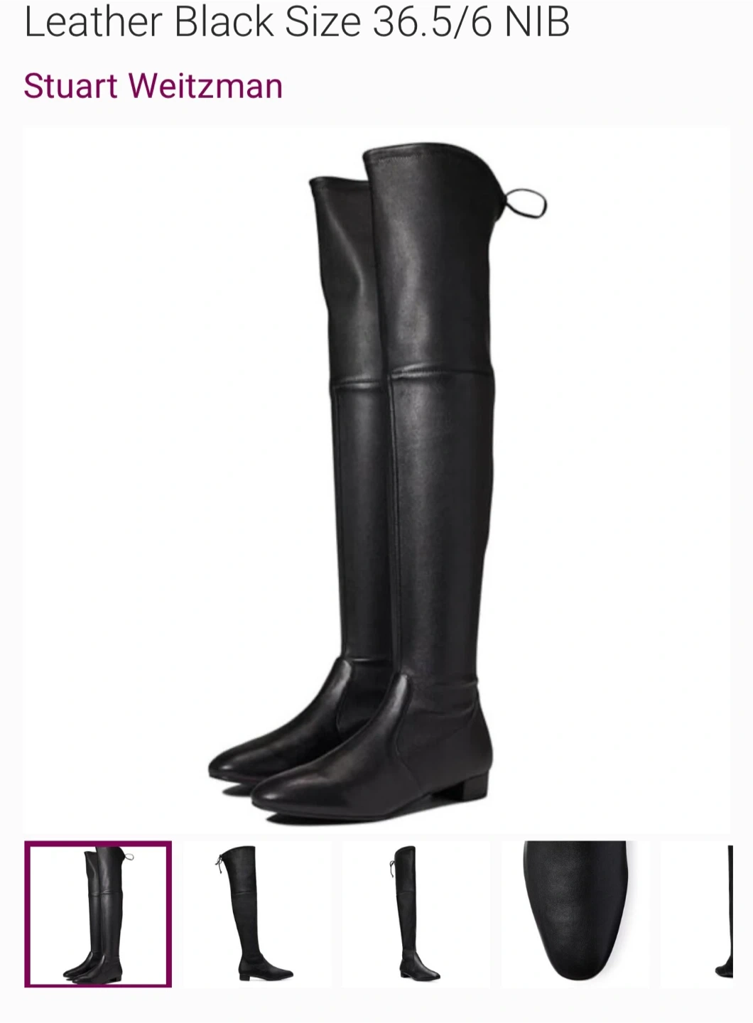 These are a pair of brand new Stuart Weitzman over-the-knee leather boots in black, size 6 (US). They come with the original box.