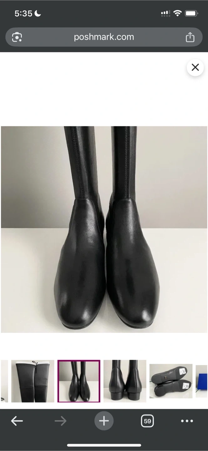 These are a pair of brand new Stuart Weitzman over-the-knee leather boots in black, size 6 (US). They come with the original box.