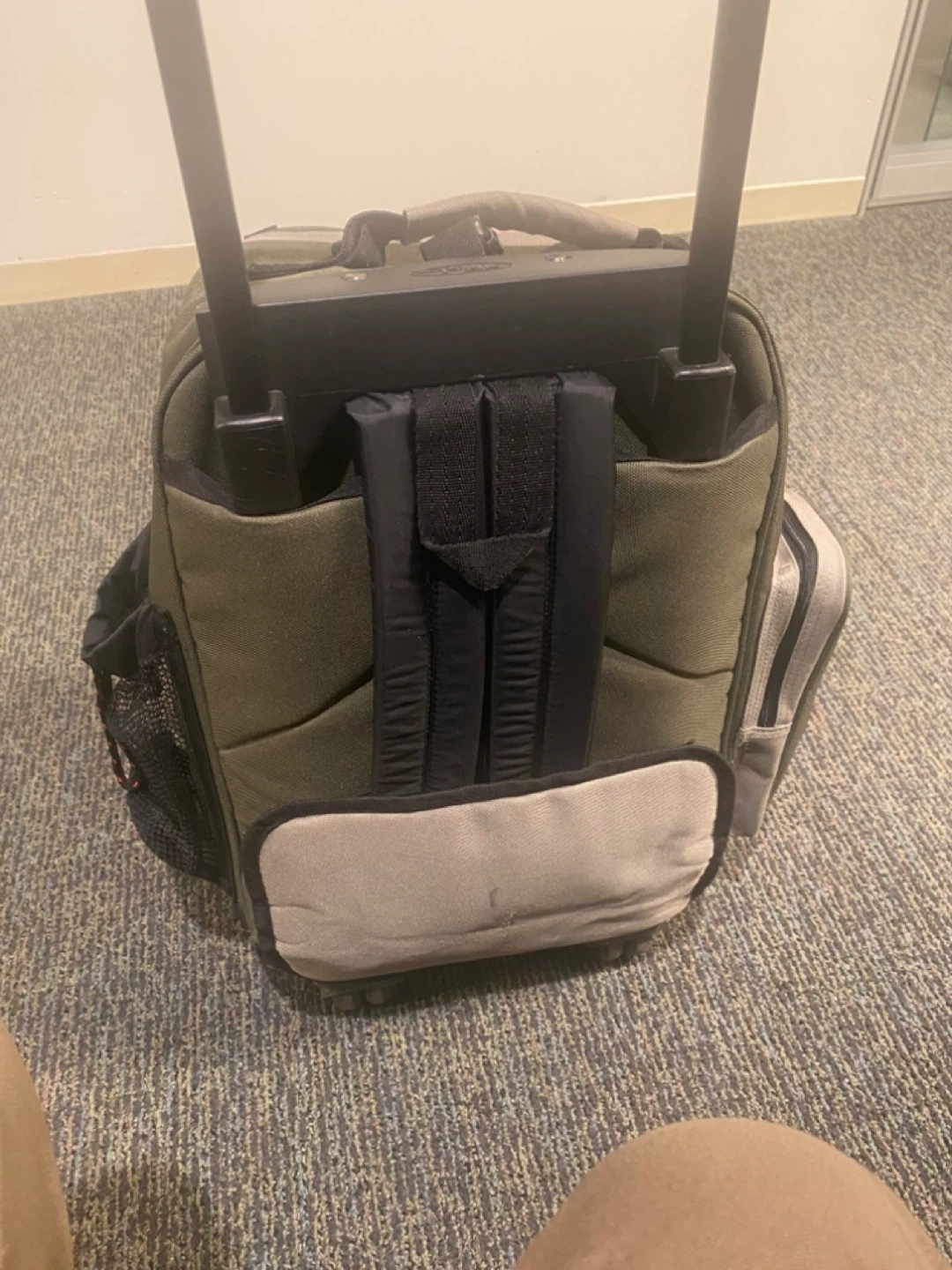 Selling Cal Pak rolling backpack in olive green.