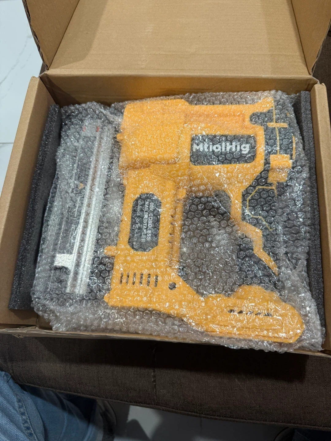 Selling a brand new MtiolHig 2-in-1 cordless brad nailer! It's an 18-gauge nailer/stapler. Comes in the original box with all components included. This tool features adjustable nailing depth and single contact firing, offering two nailing modes for versatility. Perfect for various projects around the house!