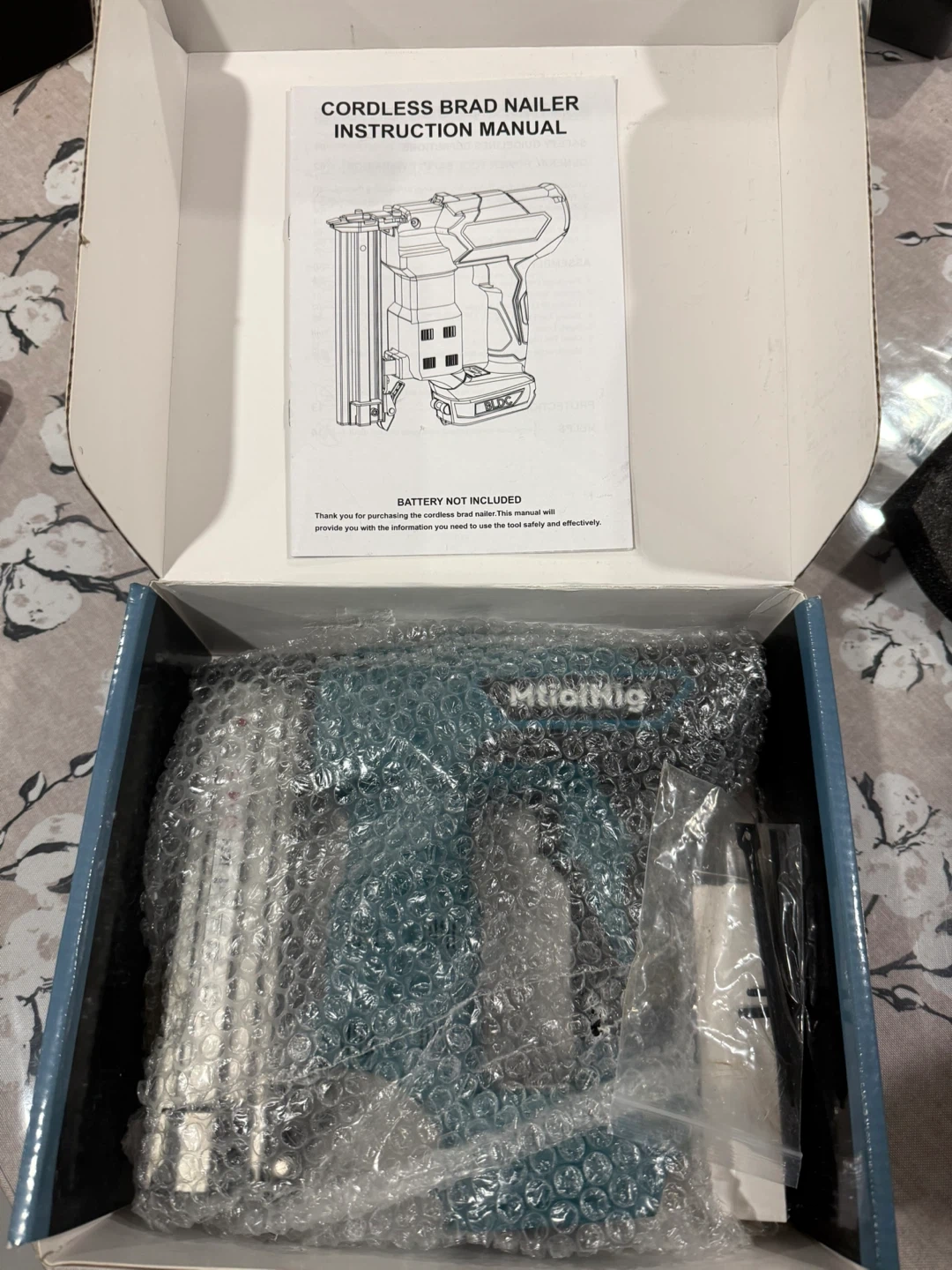 Selling a brand new MtioHig cordless brad nailer. comes with the original box and instruction manual. Note that the battery is not included.