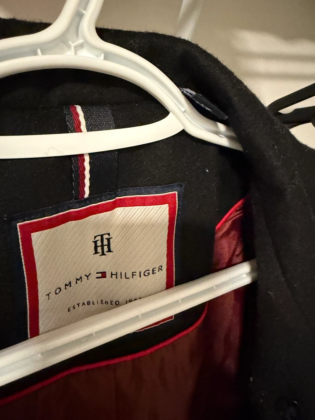 Selling a Tommy Hilfiger black coat. It's in great condition, rarely worn and ready for a new owner! A classic piece to add to your wardrobe.