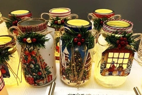 Beautiful Hand Decorated Glass Christmas Jars with Lights