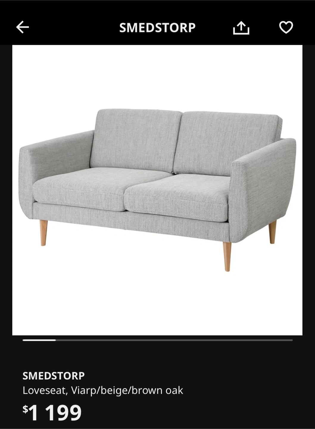 Selling a SMEDSTORP loveseat in Viarp beige/brown oak.