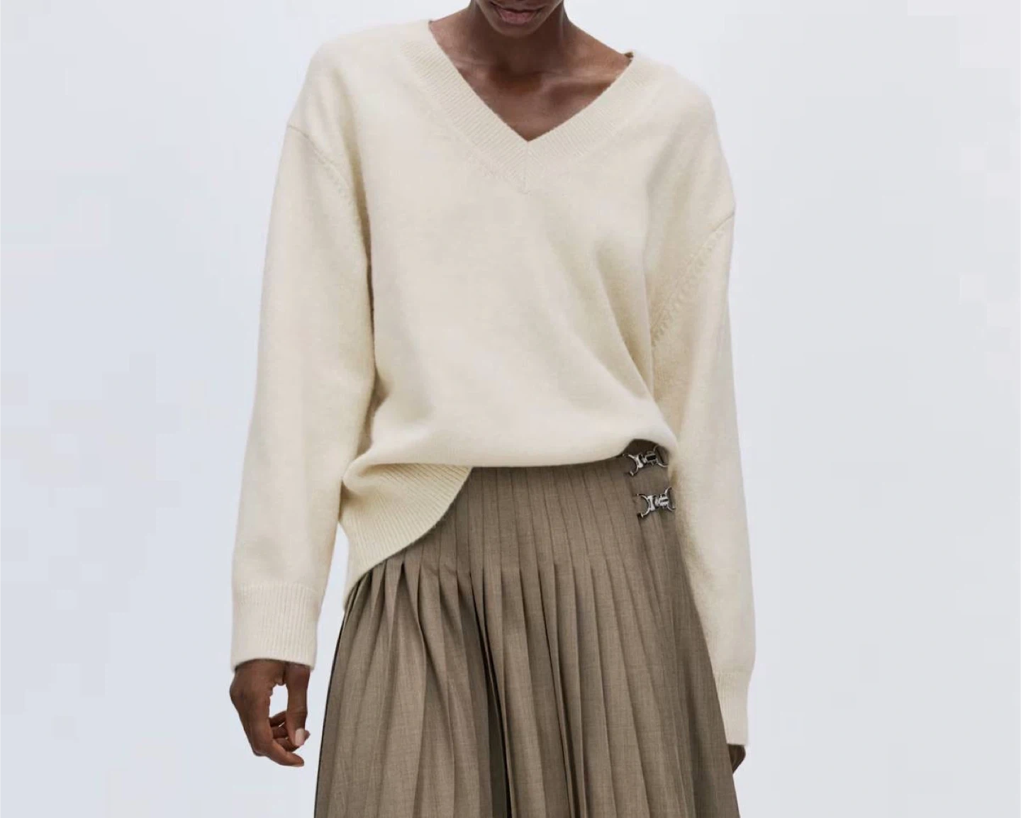 Oversized sweater in a soft knit. V-neck, dropped shoulders, and long sleeves. Ribbing at neckline, cuffs, and hem.