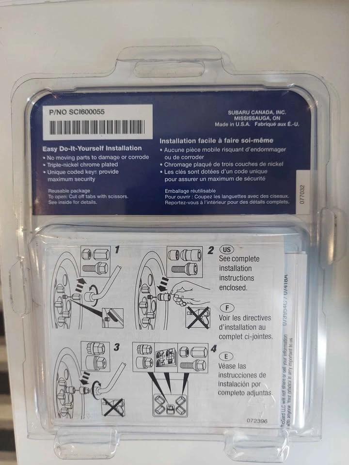 Selling a set of Subaru wheel lock nuts that came off my 2021 Subaru Crosstrek Outdoor. Good condition, nothing wrong with them. Genuine Subaru lock nuts. Thread size: 12x1.25 (fits Crosstrek, Forester, Impreza, Outback, etc.). Condition: no rust or damage. Removed carefully and ready to install. Includes lock key. Cash only pick up Bayly and Salem. Perfect for anyone needing a replacement Subaru lock set or wanting extra wheel security.