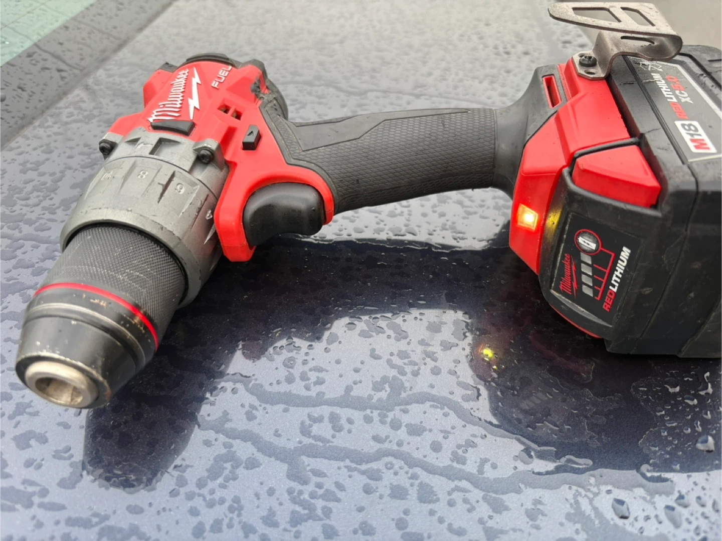Selling a used Milwaukee M18 FUEL cordless drill. It shows some signs of wear, but it's still in good working condition. Great for various drilling tasks around the house or on the job site!