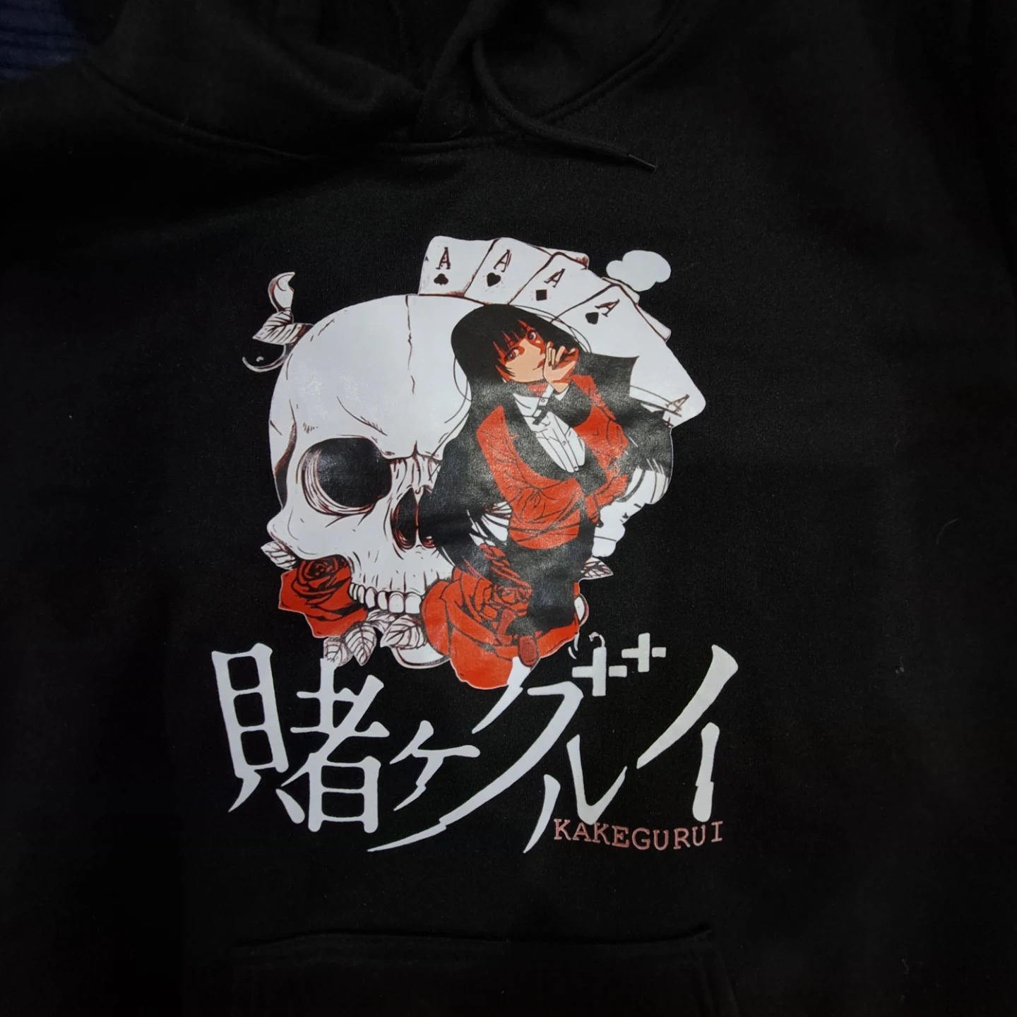 Selling a black hoodie featuring a Kakegurui design. It's in great shape and ready for a new owner!