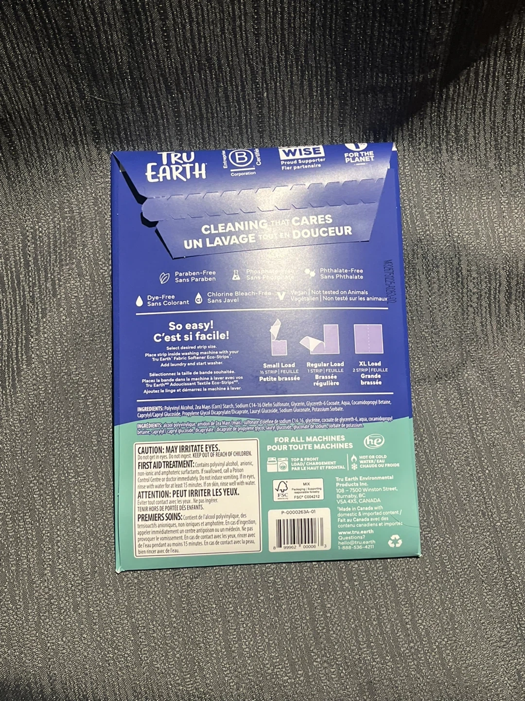 Selling a box of Tru Earth Laundry Detergent Sheets! This box contains 128 loads of fragrance-free, hypoallergenic sheets that are easy and effective. They're water-activated and come in eco-strips. Great for all machines!