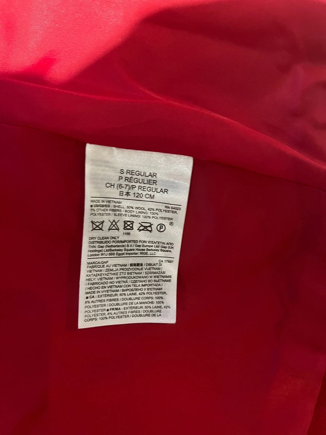Red wool duffle coat.