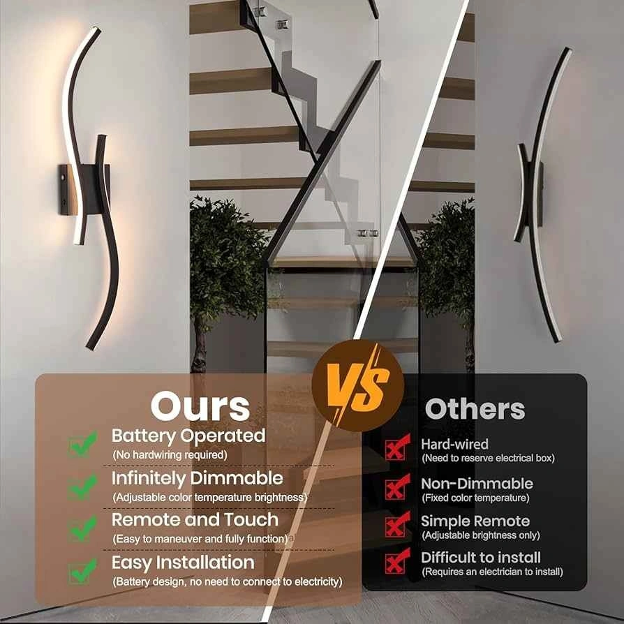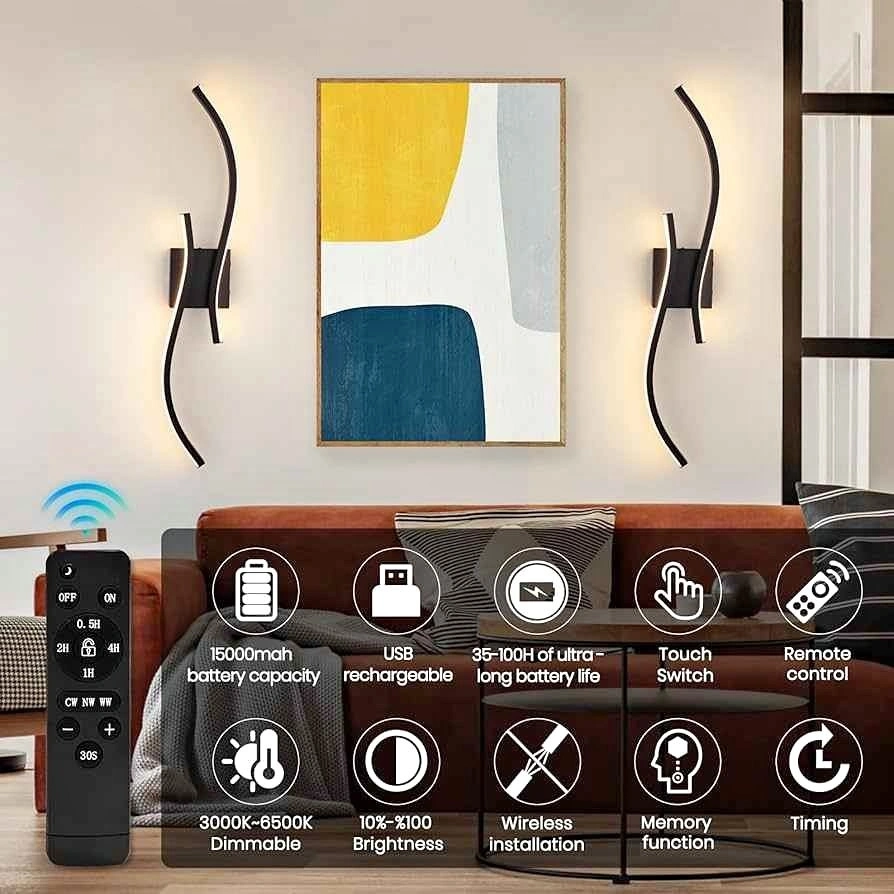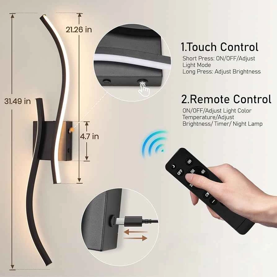 The black modern battery operated wall sconces is more stylish and fashionable, adapting to a variety of scenarios and making your home more aesthetically pleasing. This battery powered wall sconces is equipped with a remote control to easily change the 3 color temperatures and brightness without getting up. You can also manually touch the light buttons for direct control, and it also has a timer function, making it very easy to use.