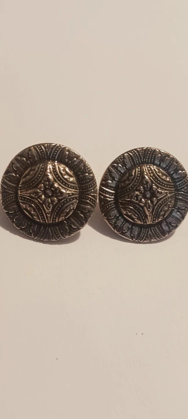 MIRIAM HASKELL DESIGNER SIGNED RARE VINTAGE SILVER TONE ROUND SHAPED CLIP-ON EARRINGS. They have a detailed, ornate design and are in excellent condition. 1.2" diameter. ALL MY PRICES ARE NEGOTIABLE !!