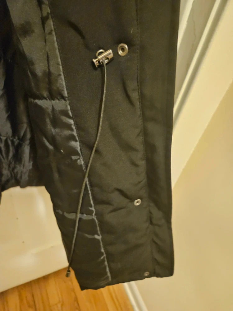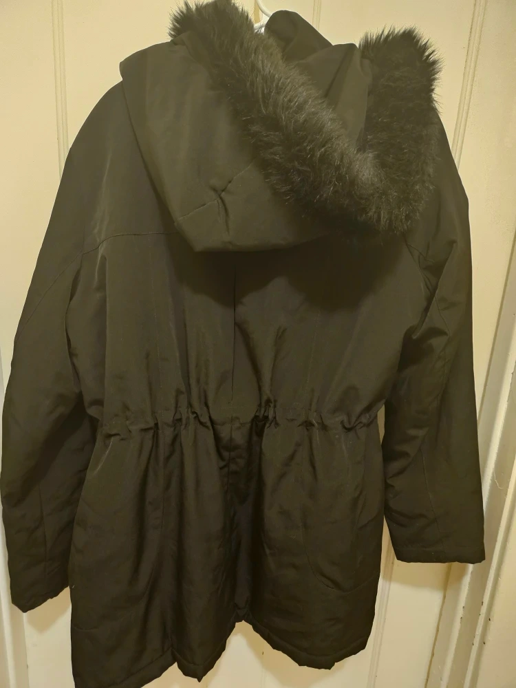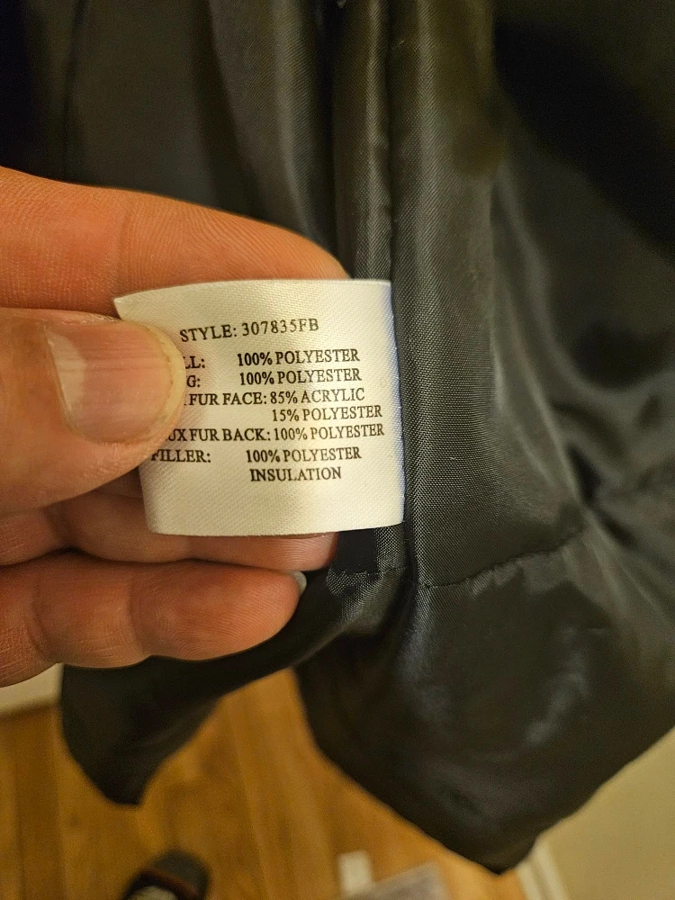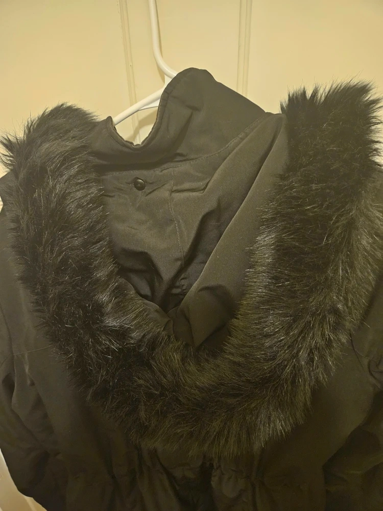 I'm selling a Forecaster of Boston winter coat in black. It's a size L and made with 100% polyester for the shell and lining. The fur face is 85% acrylic and 15% polyester, with 100% polyester for the fur back and filler insulation. Great for keeping warm this winter!